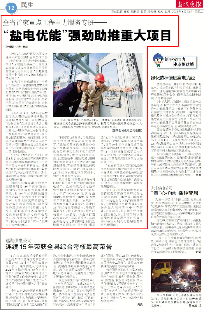盐城晚报:“盐电优能”强劲助推重大项目