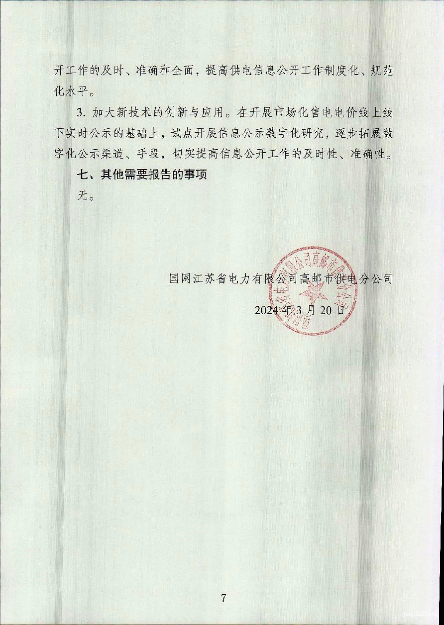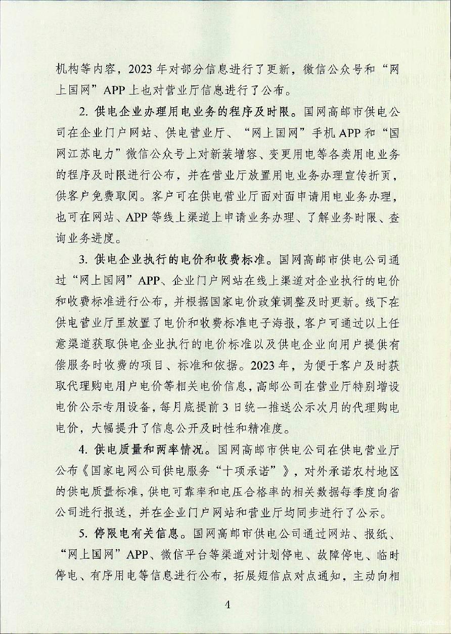 国网高邮市供电公司2023年度信息公开年报