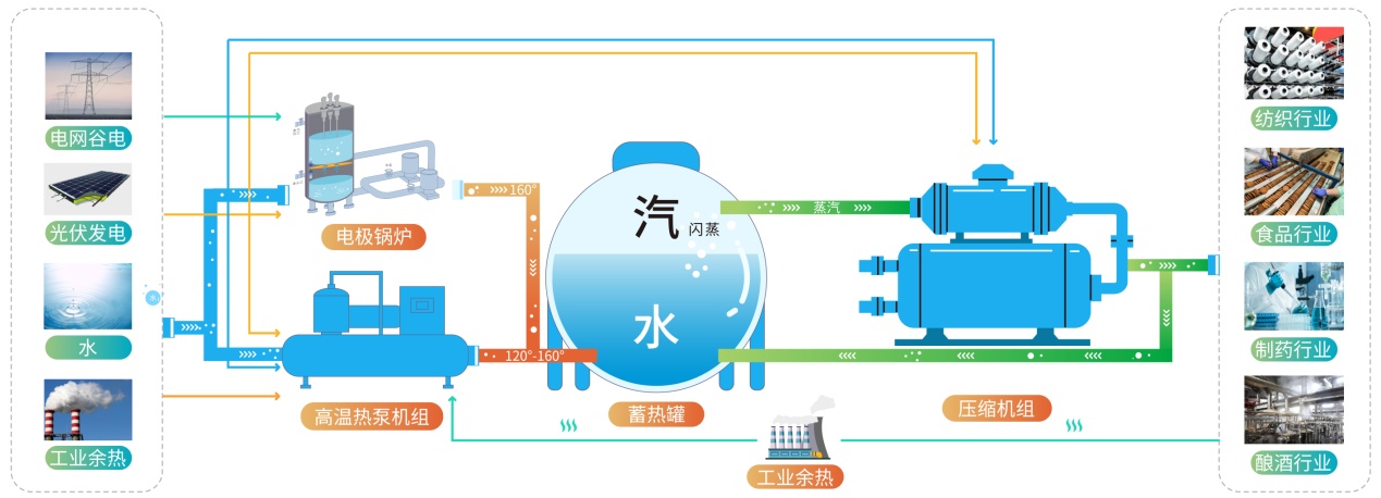 公司依托省级工程研究中心,与政府、高校、用能企业、设备制造企业等利益相关方开展技术合作,设计制造“电汽魔方”,能将谷电、工业余热、光伏电等低价、免费、废弃的能源载体深度融合,以水为经济、高效的能量转换工质,制取高价值的生产高温蒸汽,并将蒸汽“浓缩”成“水”的形态储存,需要时再膨胀释放回蒸汽形态,实现热能的大规模存储和利用,为解决企业用汽难题奠定技术基础。