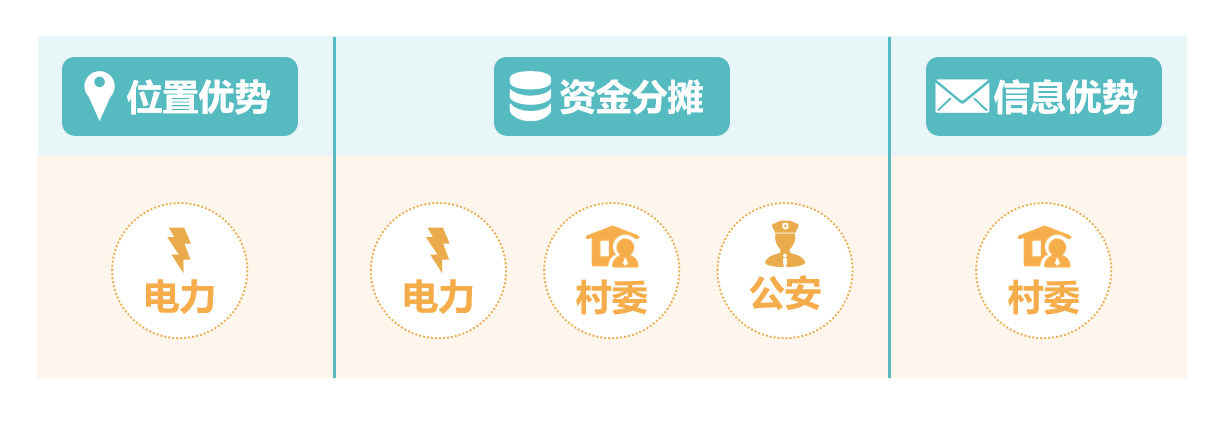 一改以往单方独扛项目建设的资金压力,引入利益相关方多摊费用。供电公司承担系统主机、屏幕等核心设备费用(约5万元,费用来源公司固有的电力设施保护的专项宣传费用,软件系统利用现有的“楼宇电视”系统免费改造);公安部门利用“平安乡村”预算,投入监控费用(约7万元)。村委负担施工与运维(约5万元)。