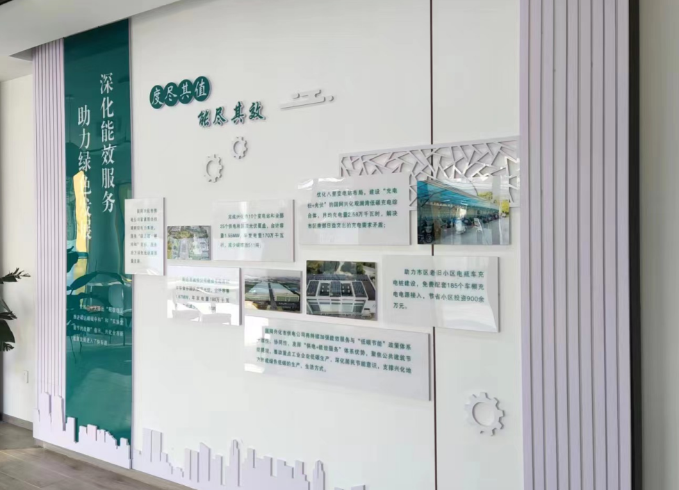 图:“兴极电”综合服务站客户休息室宣传绿电充电