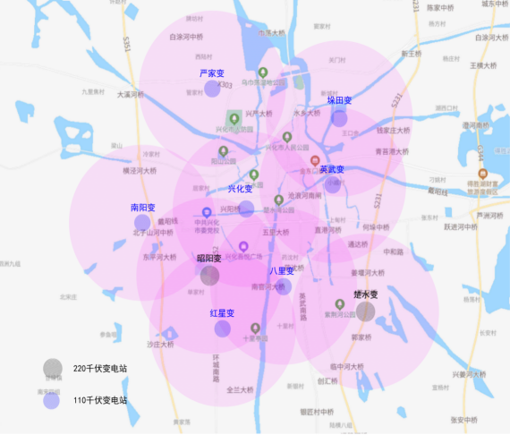 图:依托9座“兴极电”变电站实现城区服务半径2公里综合服务全覆盖