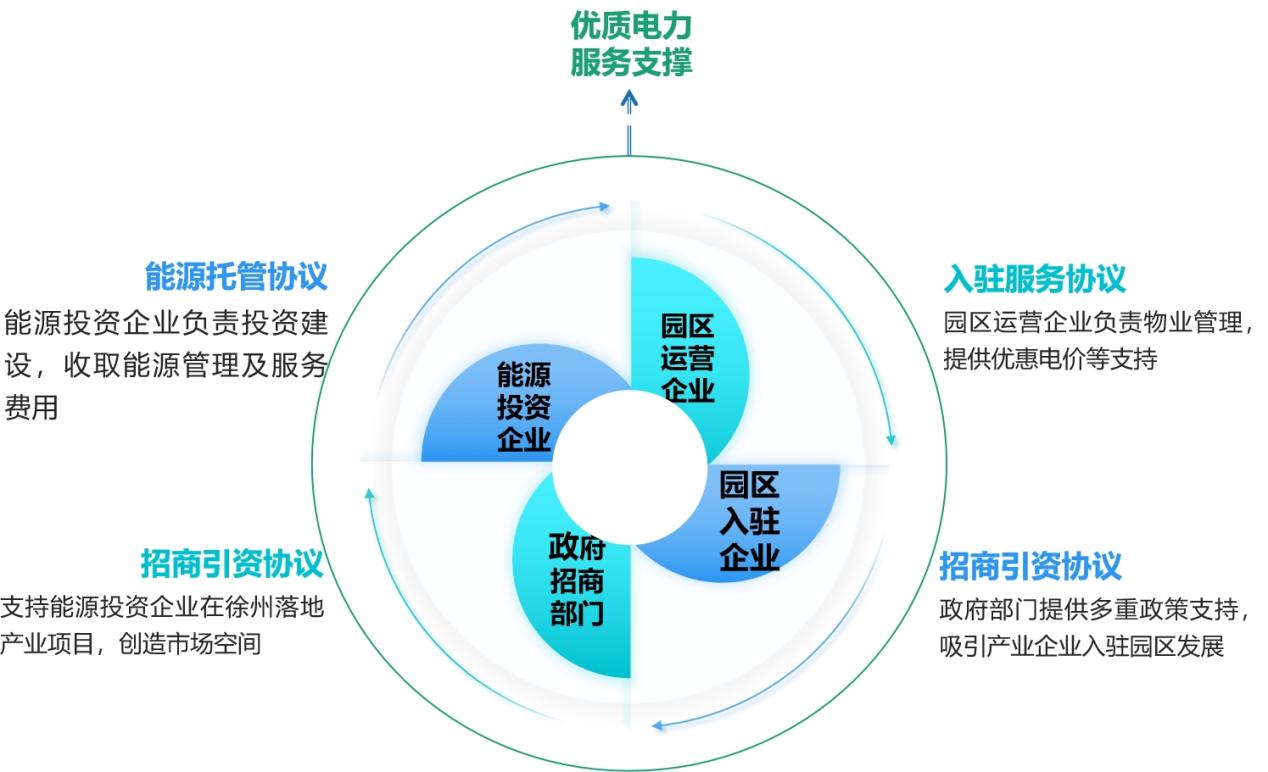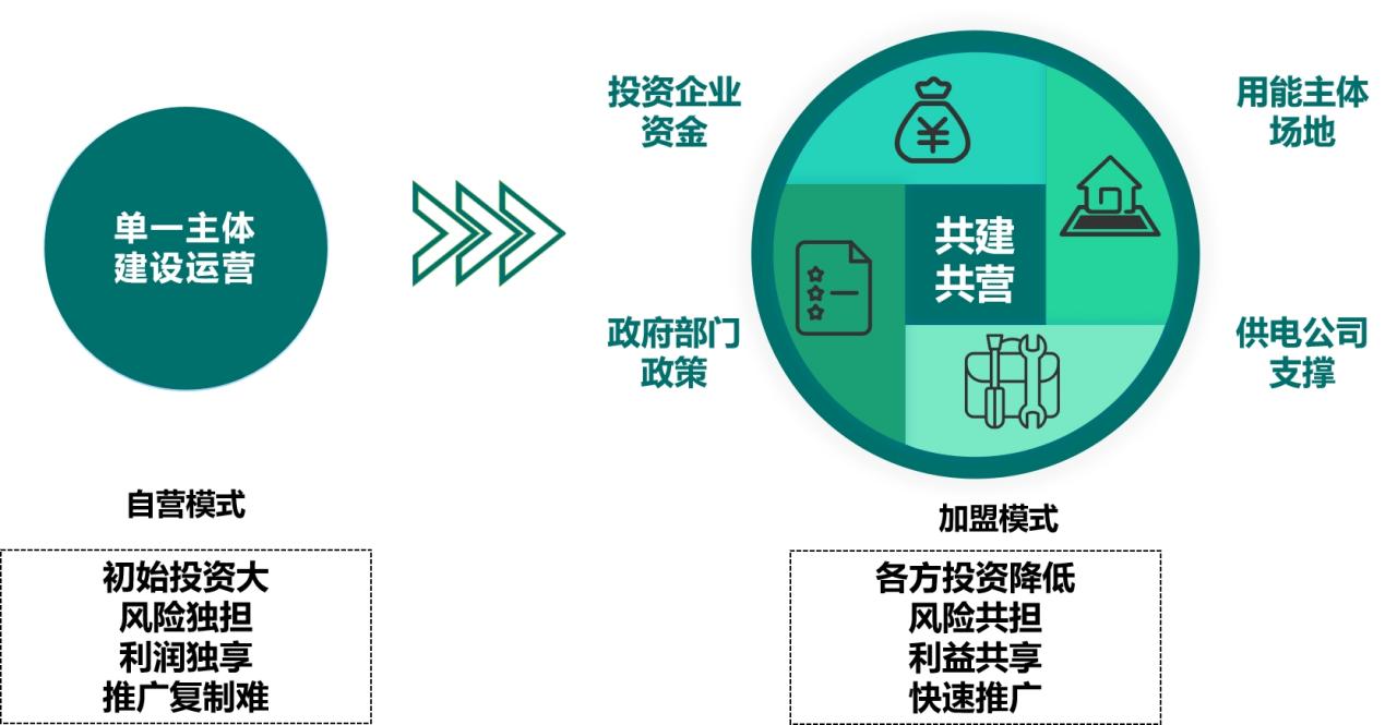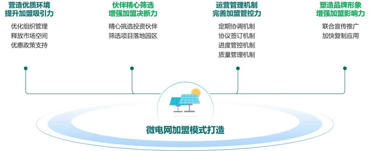 铜山公司根植利益相关方合作理念,将自身角色定位从微电网项目的“服务者”转变为“推动者”,将政府政策、园区场地、能源投资企业资金、供电公司服务支撑等优势资源充分有效聚合,转变传统由单一主体投资的“自营”模式,共同打造具有强复制性的“加盟”模式,为微电网构建全新的商业推广路径。