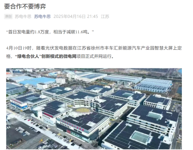 经验总结,推动“加盟”模式推广。铜山公司系统性总结丰车汇产业园微电网项目在前期沟通、过程推进当中的典型经验,持续联合铜山区政府、产业园区加强推广应用。目前项目已经成功在徐州高新区生物医药产业园实现复制应用,也为进一步在铜山青龙山、张集矿、马庄矿、马坡矿等园区微电网建设提供了参考借鉴,让更多企业入驻园区即可享受低成本用能。