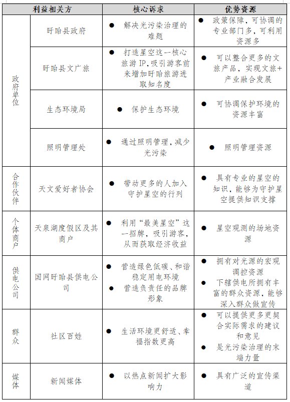 表 利益相关方核心诉求和优势资源分析表