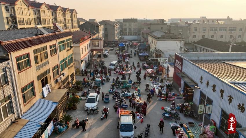 中心的对面就是惠丰集贸市场,市场内各个摊子排列有序,人流拥挤,正是一天忙碌的时候。