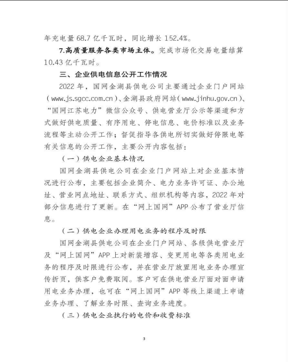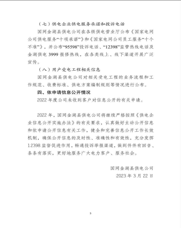 国网金湖县供电公司2022年度信息公开年报