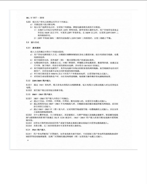 电力用户业扩报装技术规范 DL/T1917-2018