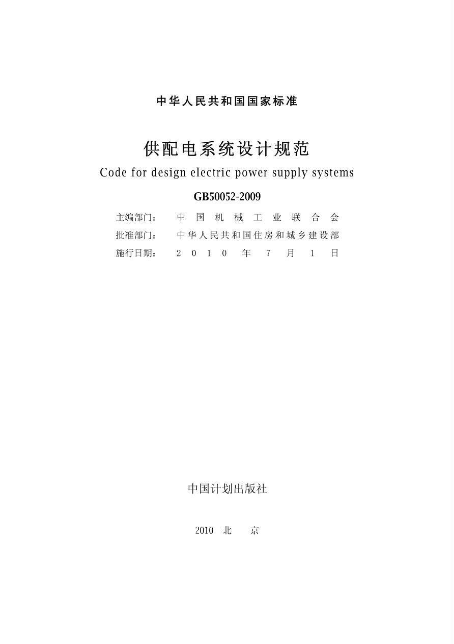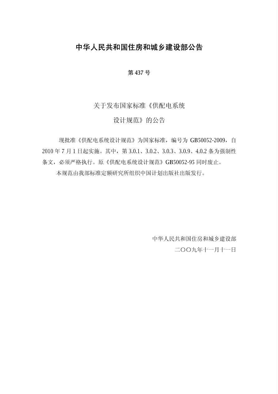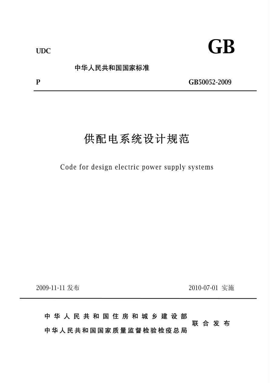 供配电系统设计规范 GB50052-2009
