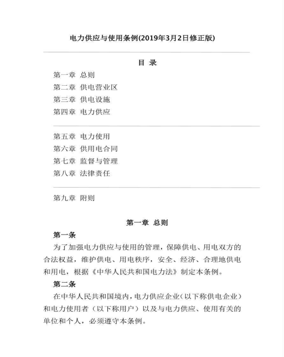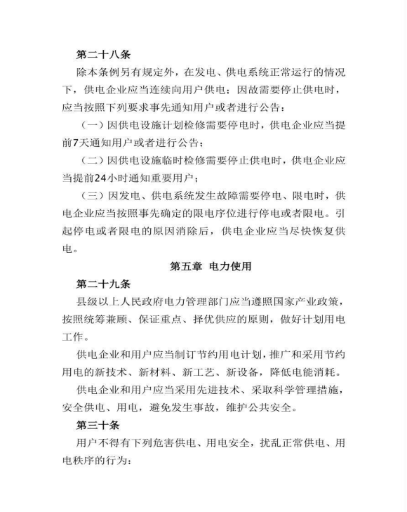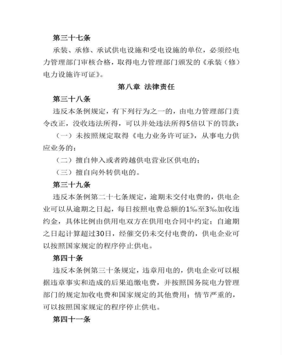 《电力供应与使用条例》