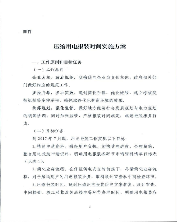国家能源局关于印发《压缩用电报装时间实施方案》的通知(国能监管〔2017〕110号)