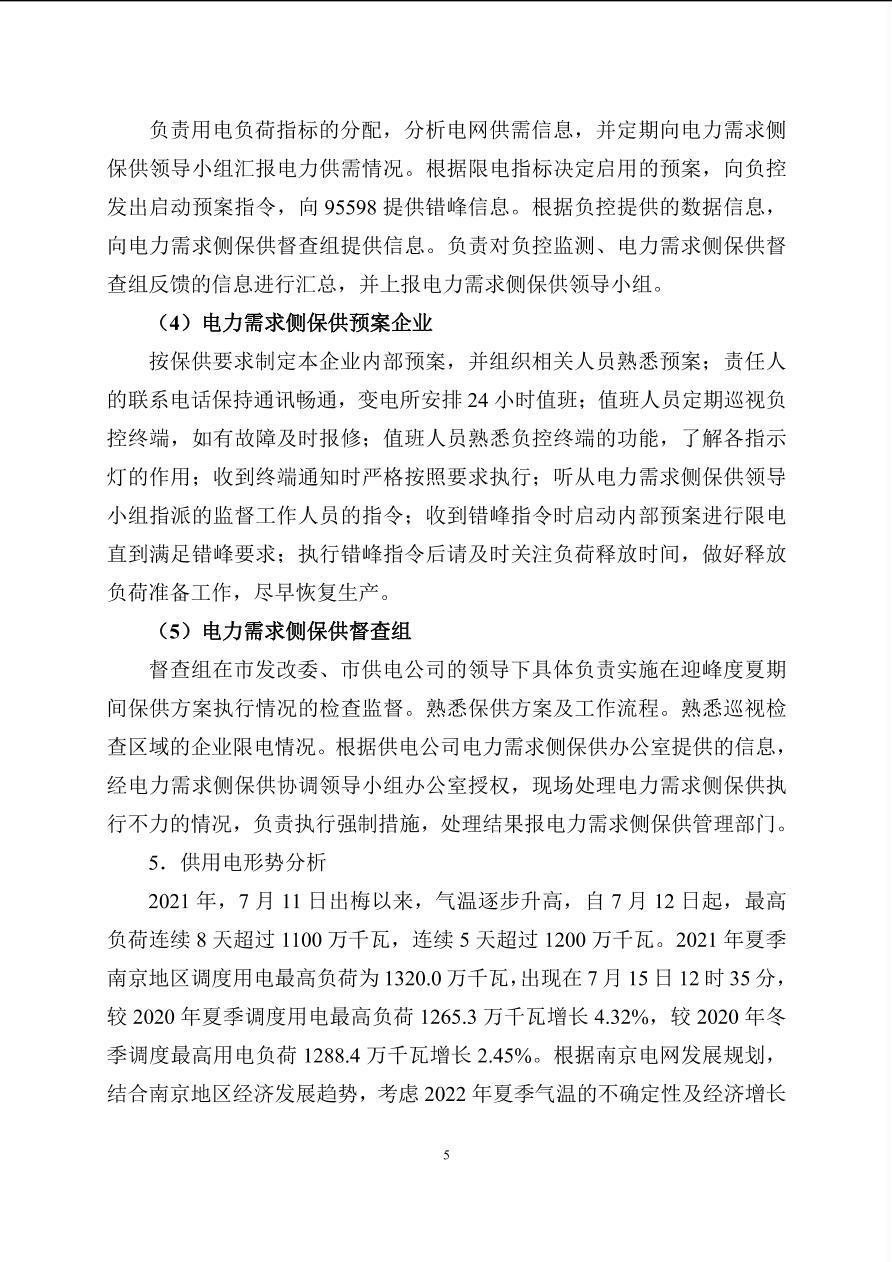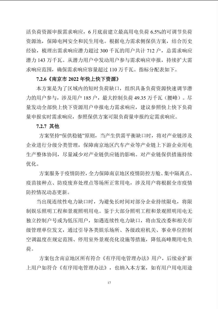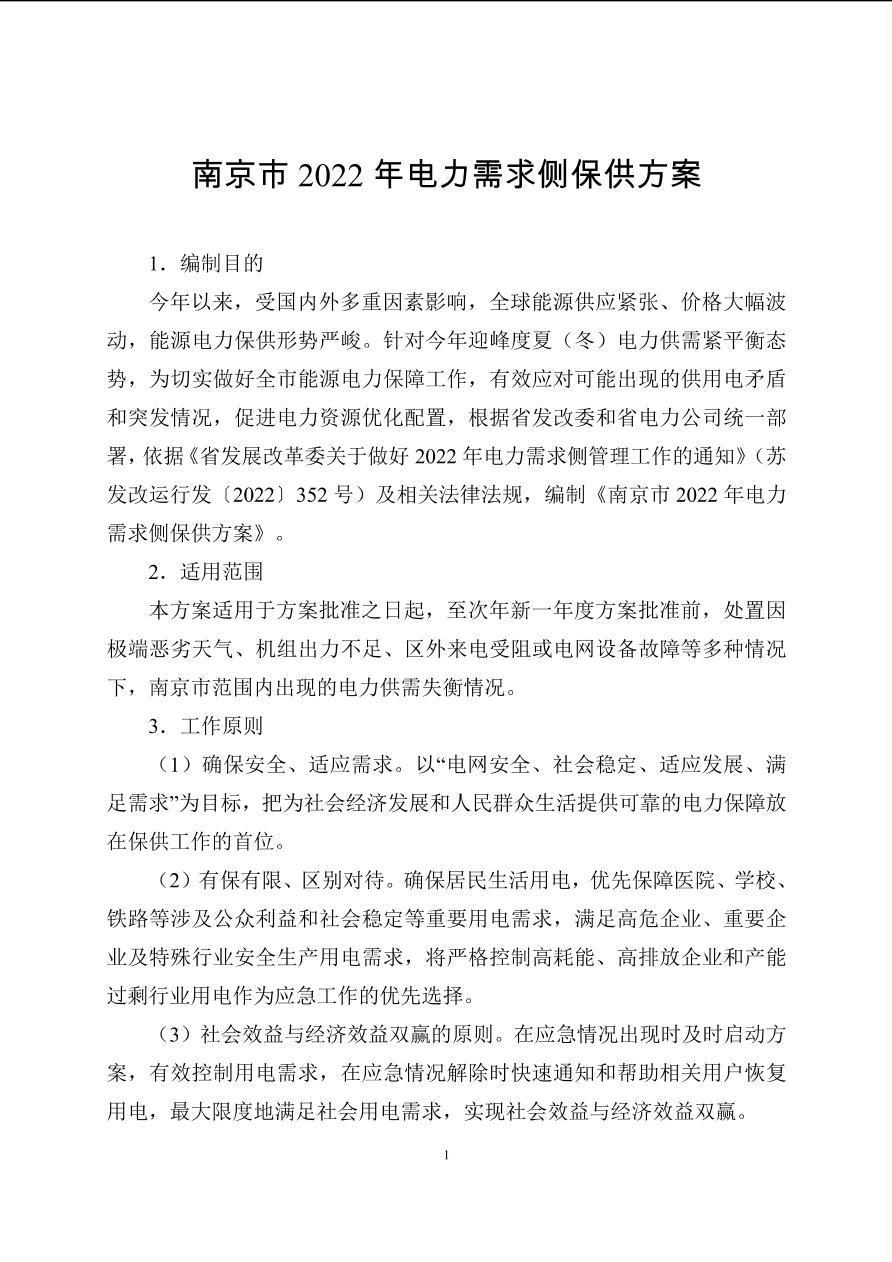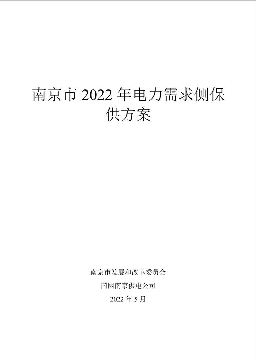 南京市2022年电力需求侧保供方案