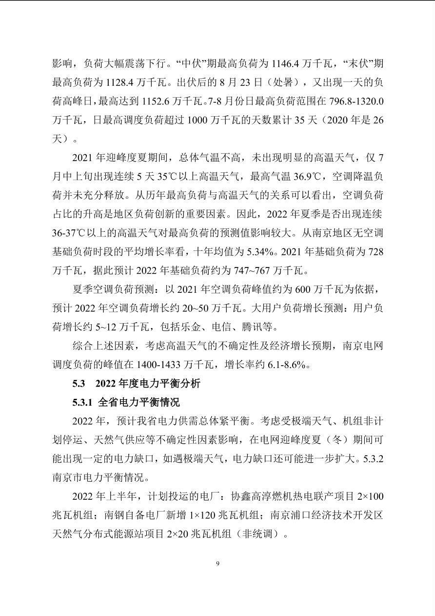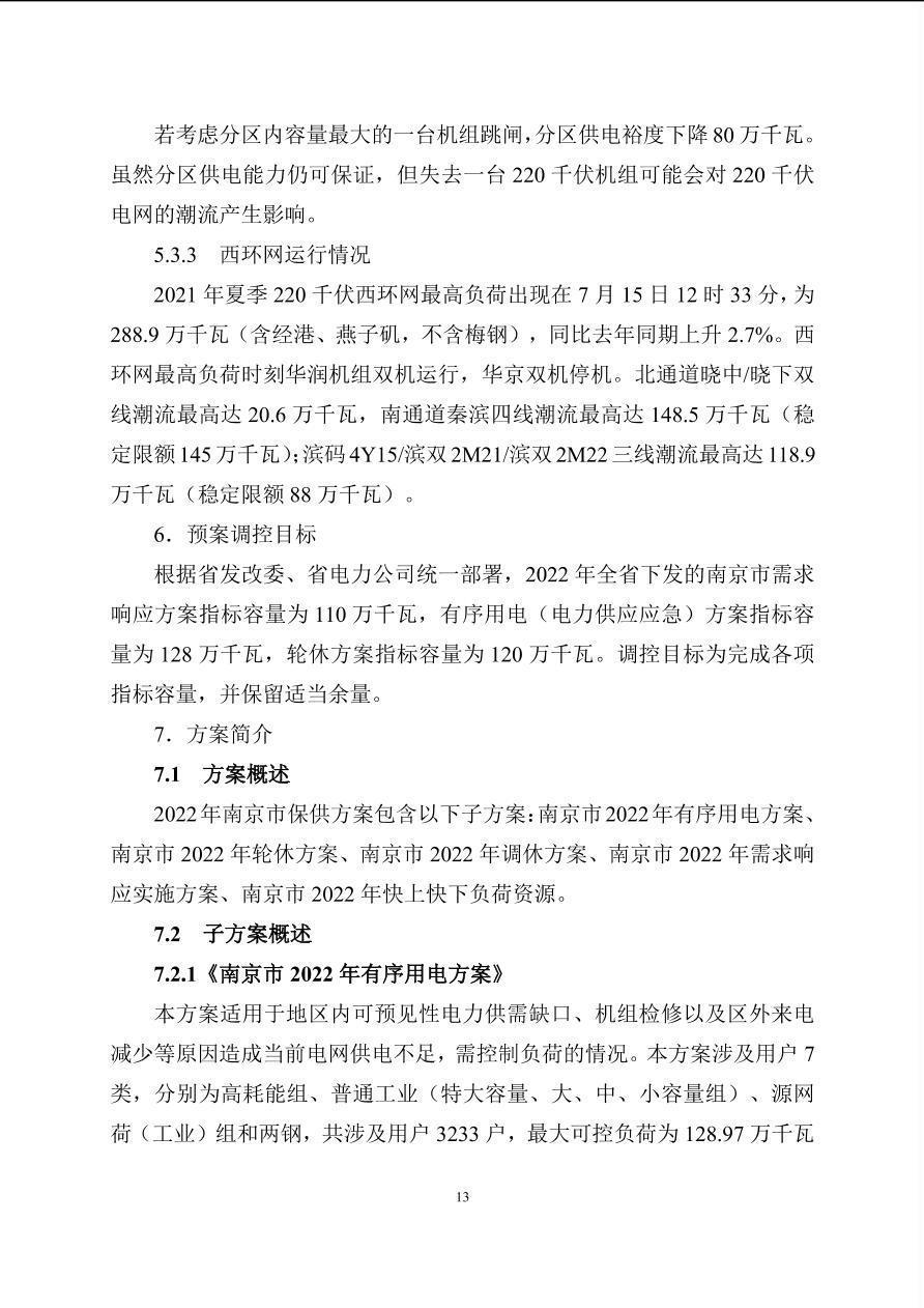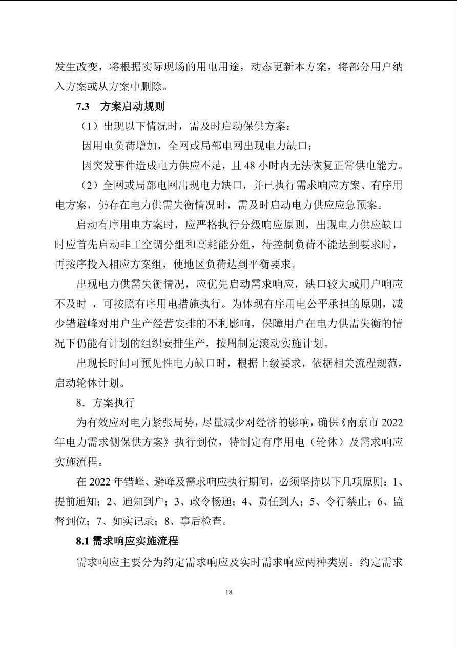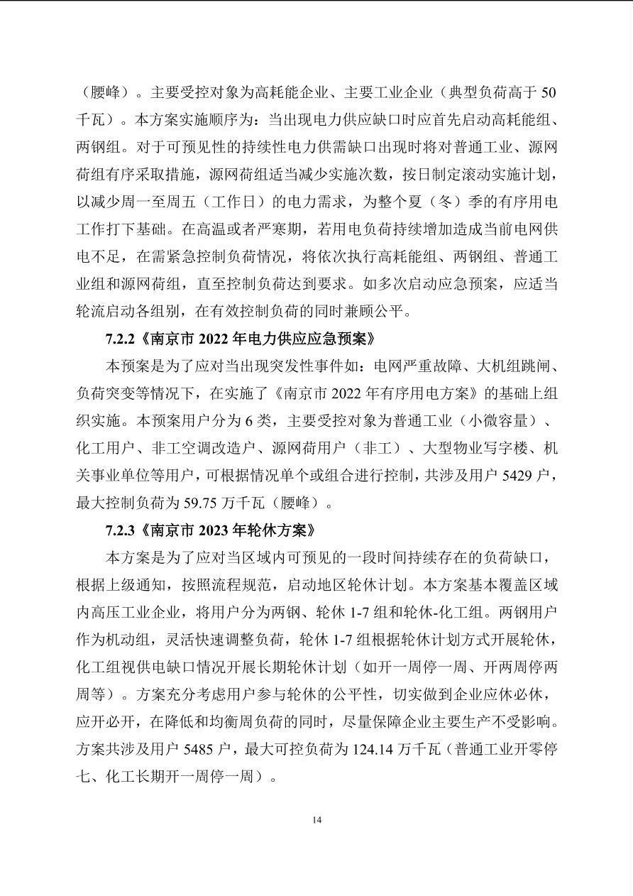 南京市2022年电力需求侧保供方案