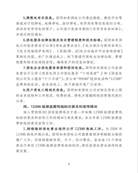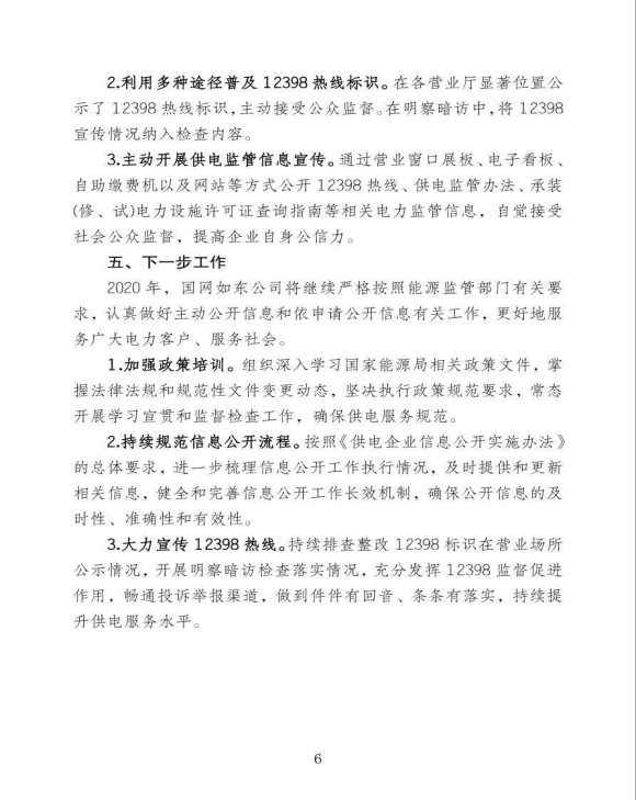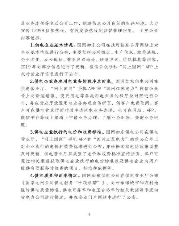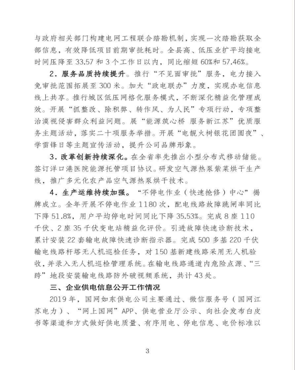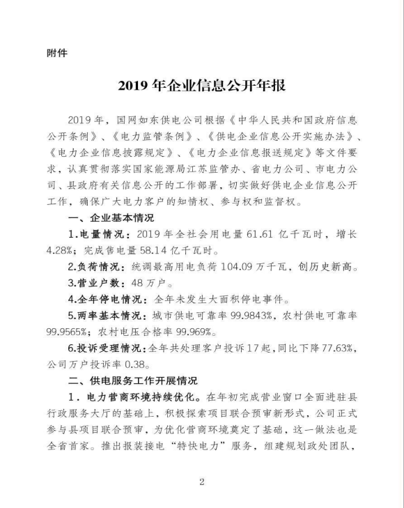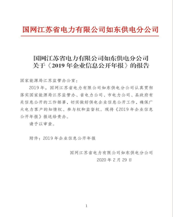 国网江苏省电力有限公司如东供电分公司关于《2019年企业信息公开年报》的报告