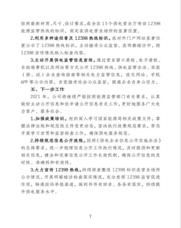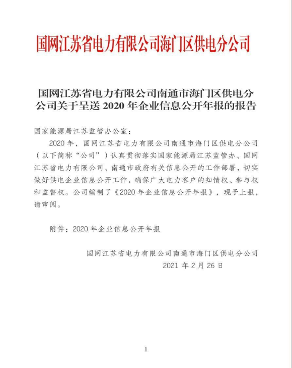 国网江苏省电力有限公司海门供电公司关于《2019年企业信息公开年报》的报告