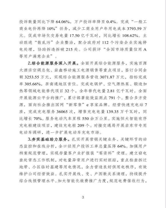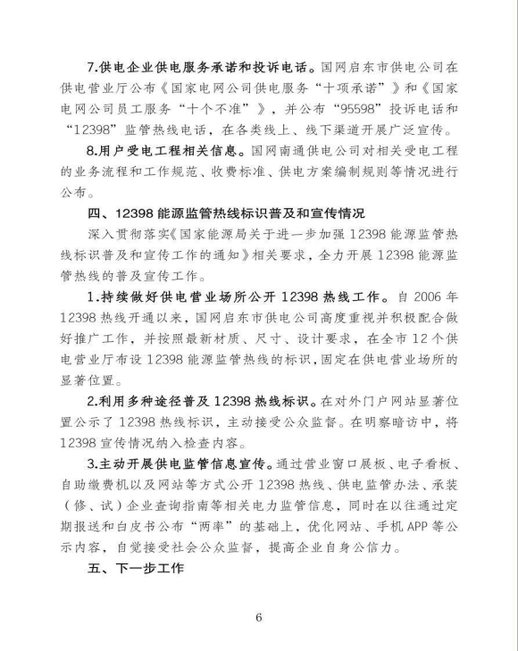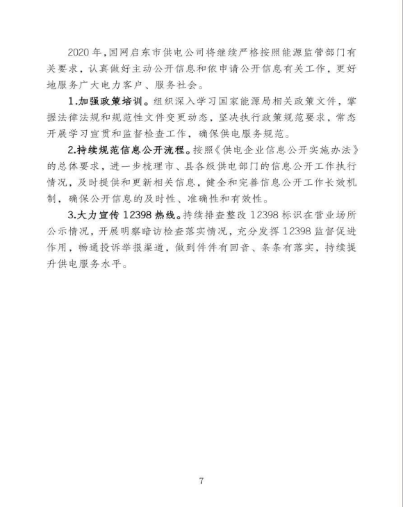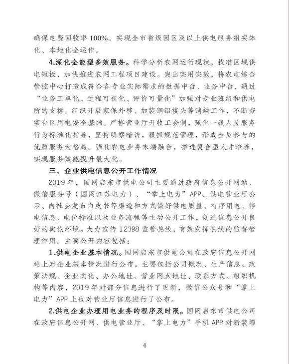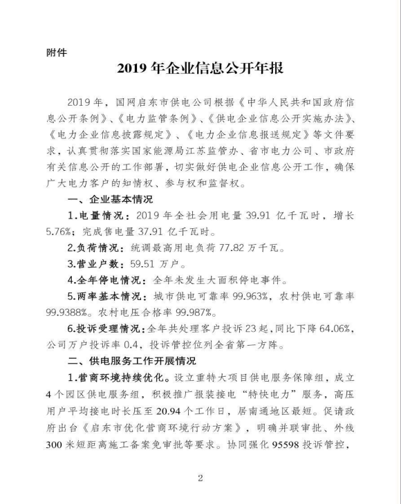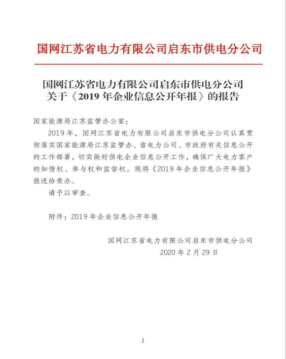 国网江苏省电力有限公司启东供电分公司关于《2019年企业信息公开年报》的报告
