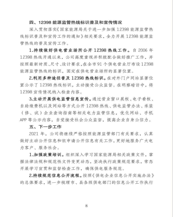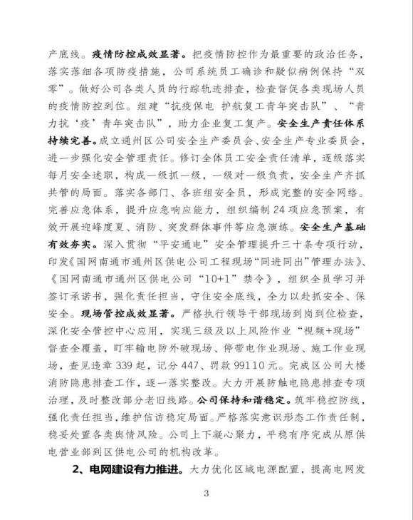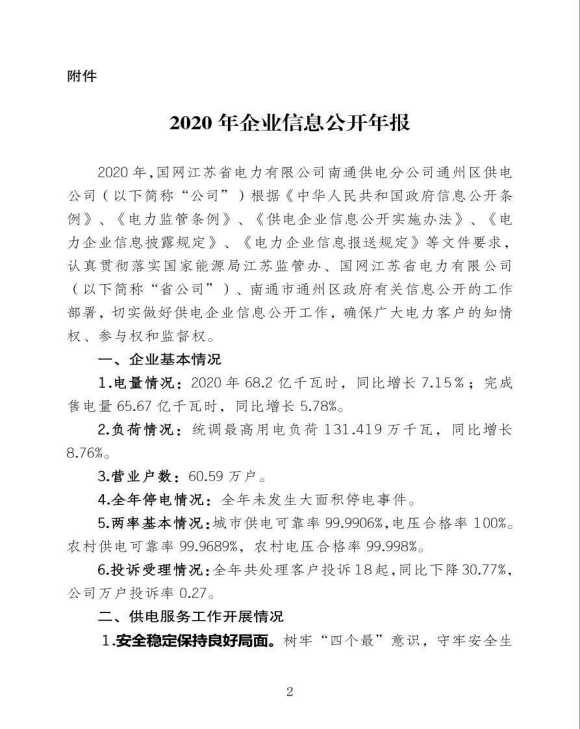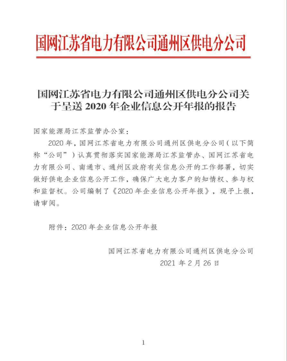 国网江苏省电力有限公司通州区供电分公司关于《2020年企业信息公开年报》的报告