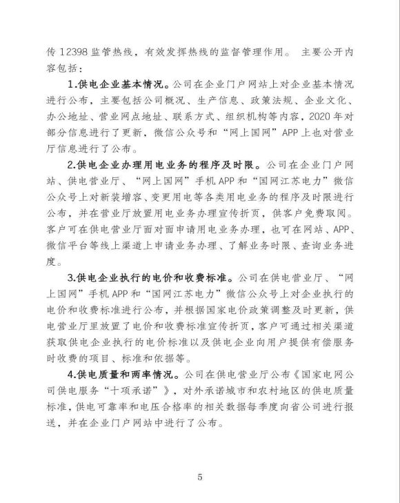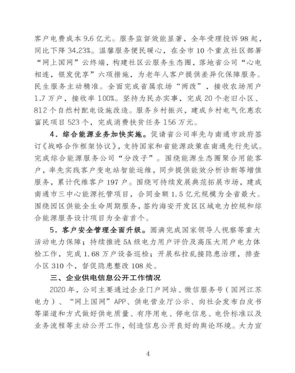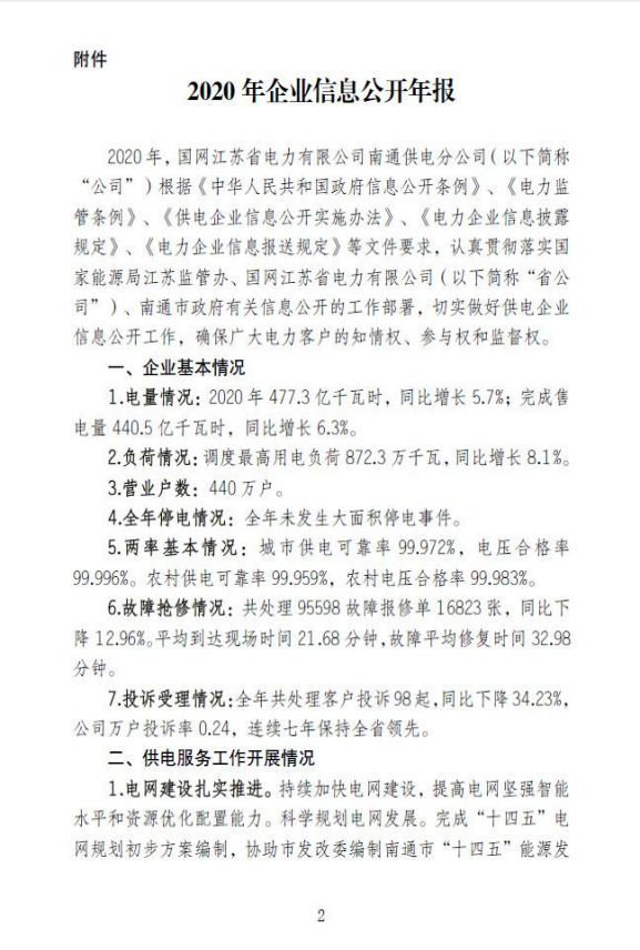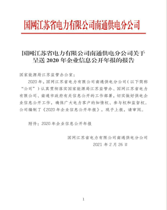 国网江苏省电力有限公司南通供电分公司关于《2020年企业信息公开年报》的报告