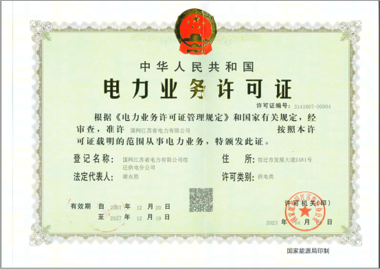 国网宿迁供电公司电力业务许可证