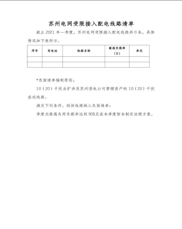 苏州供电公司电网接入受限清单(2021年一季度)