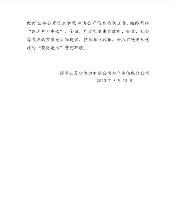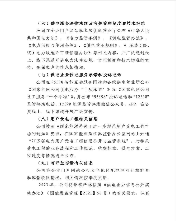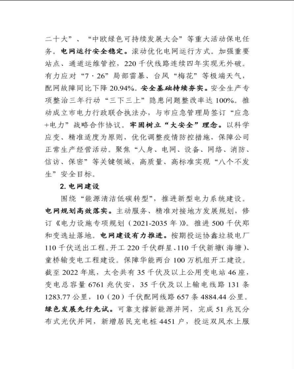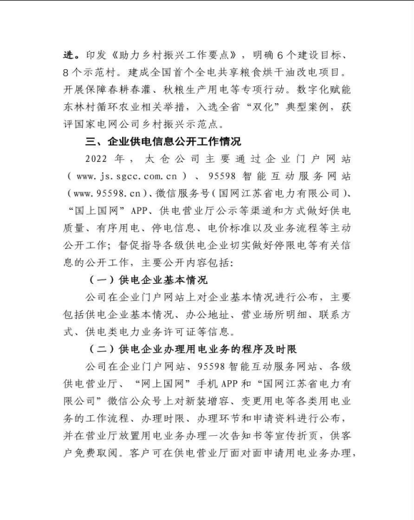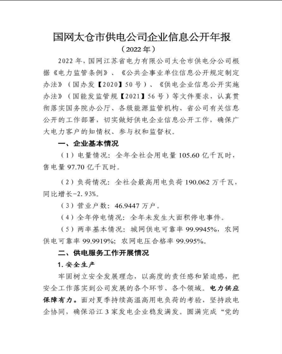 2022年太仓市供电公司企业信息公开年报