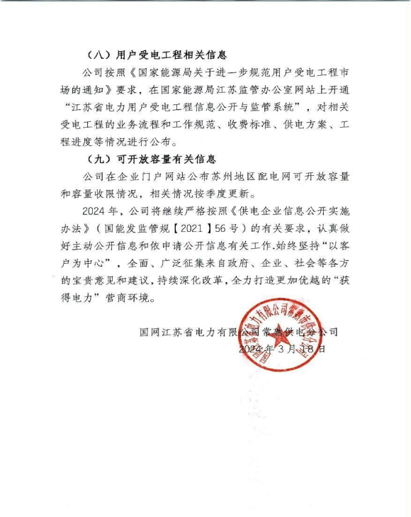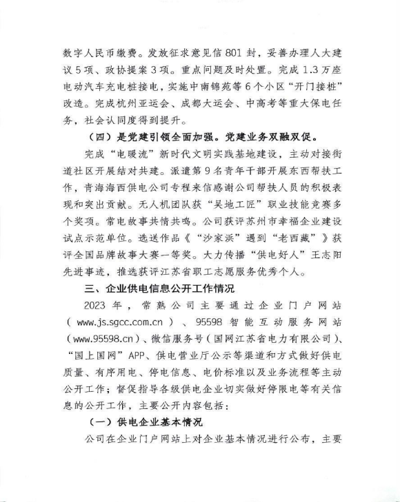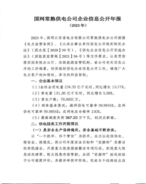 2023年常熟供电公司企业信息公开年报
