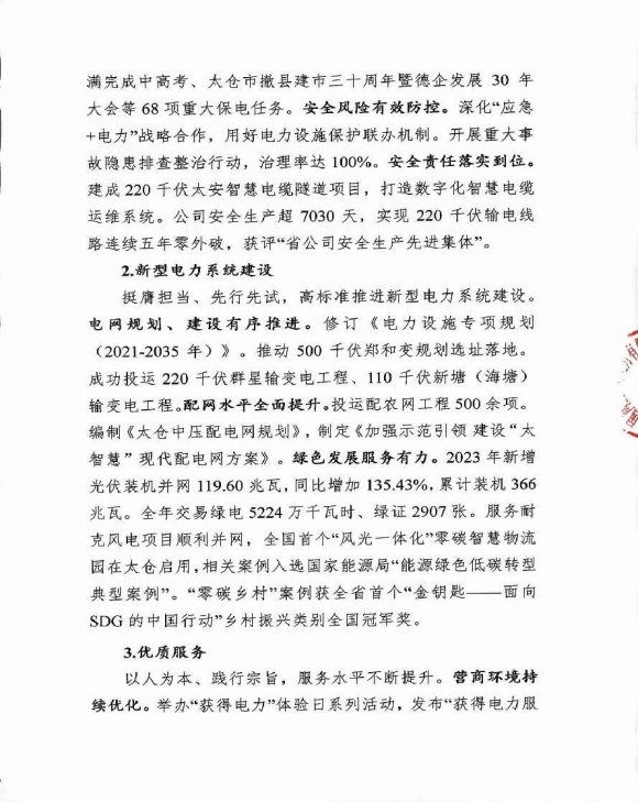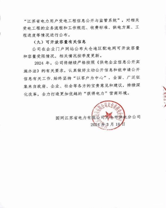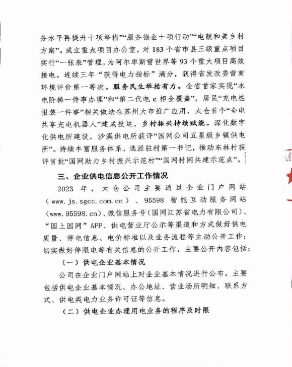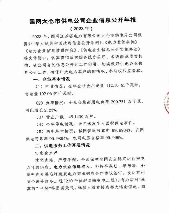 2023年太仓供电公司企业信息公开年报