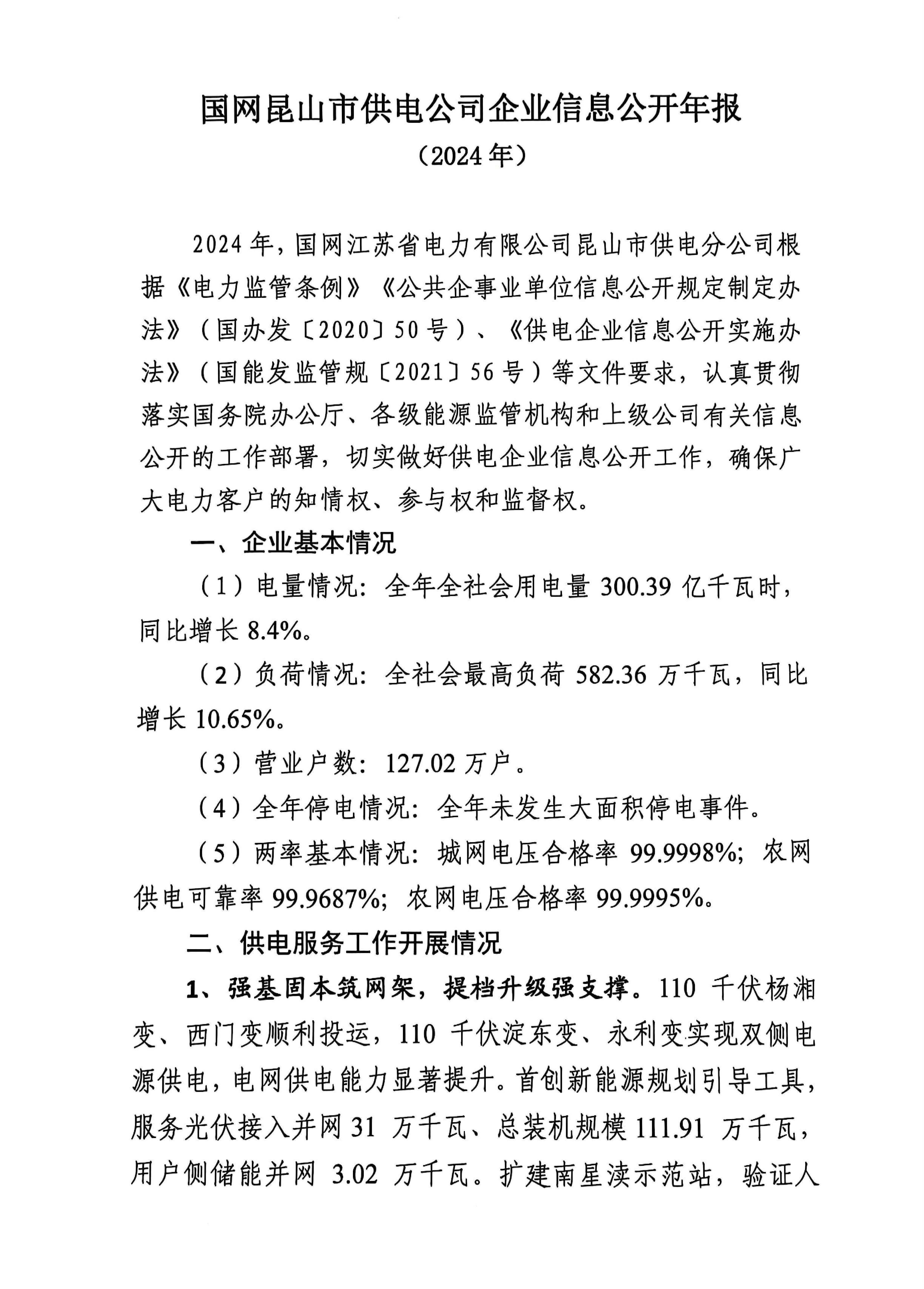 2024年国网昆山市供电公司企业信息公开年报