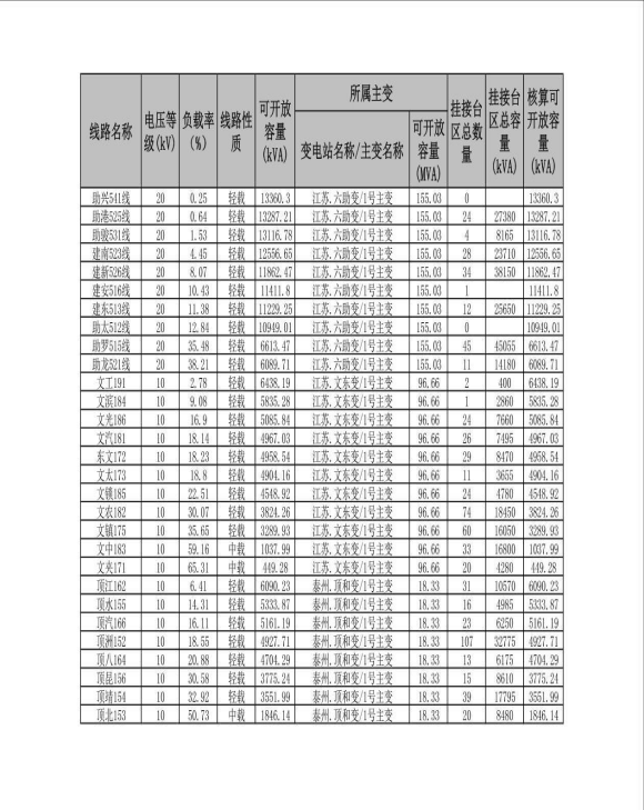 可开放容量有关信息