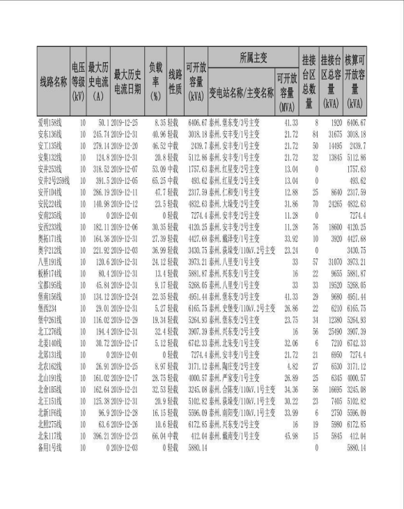 兴化地区2019年第三季度可开放容量信息