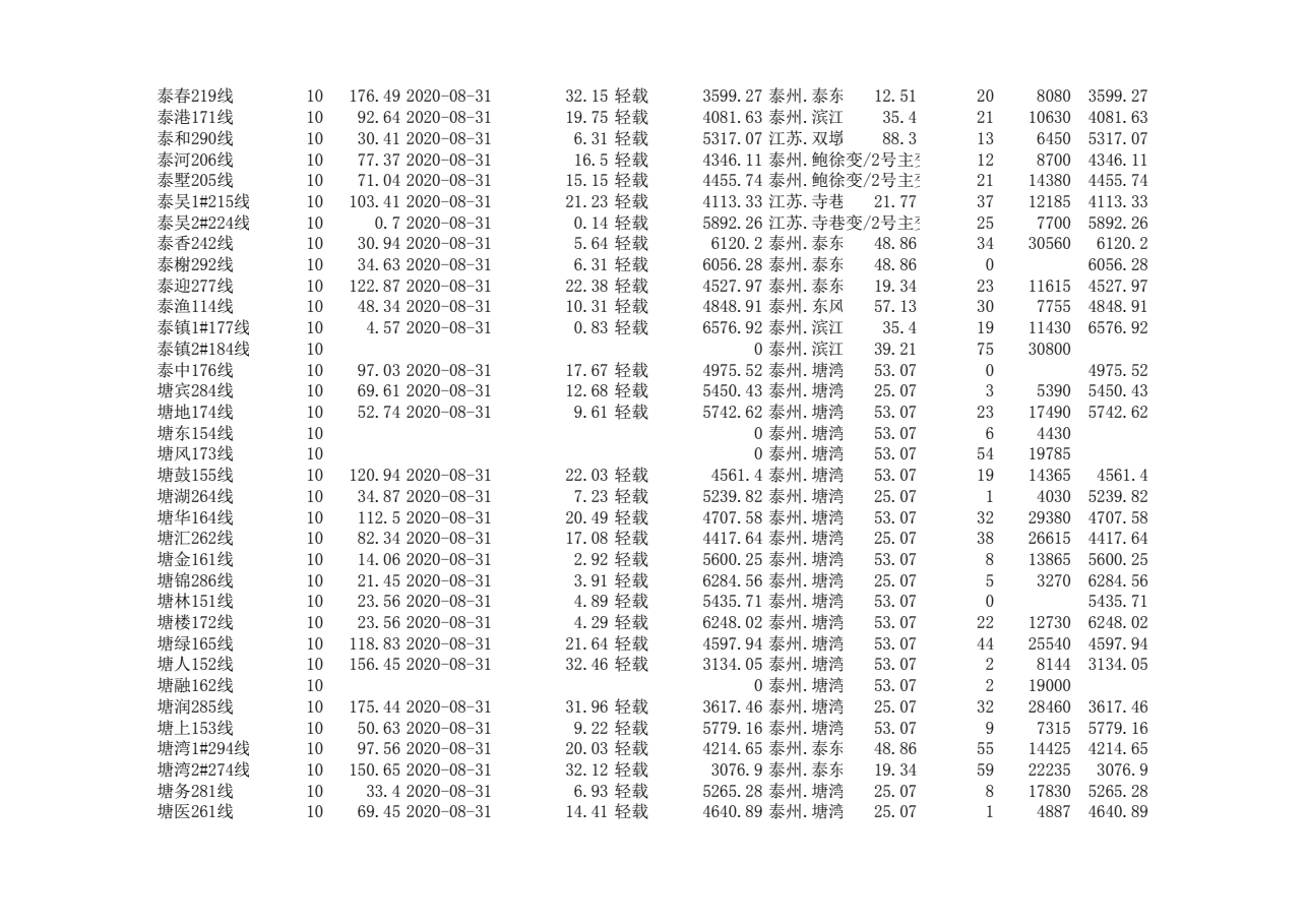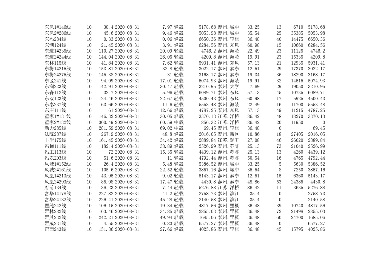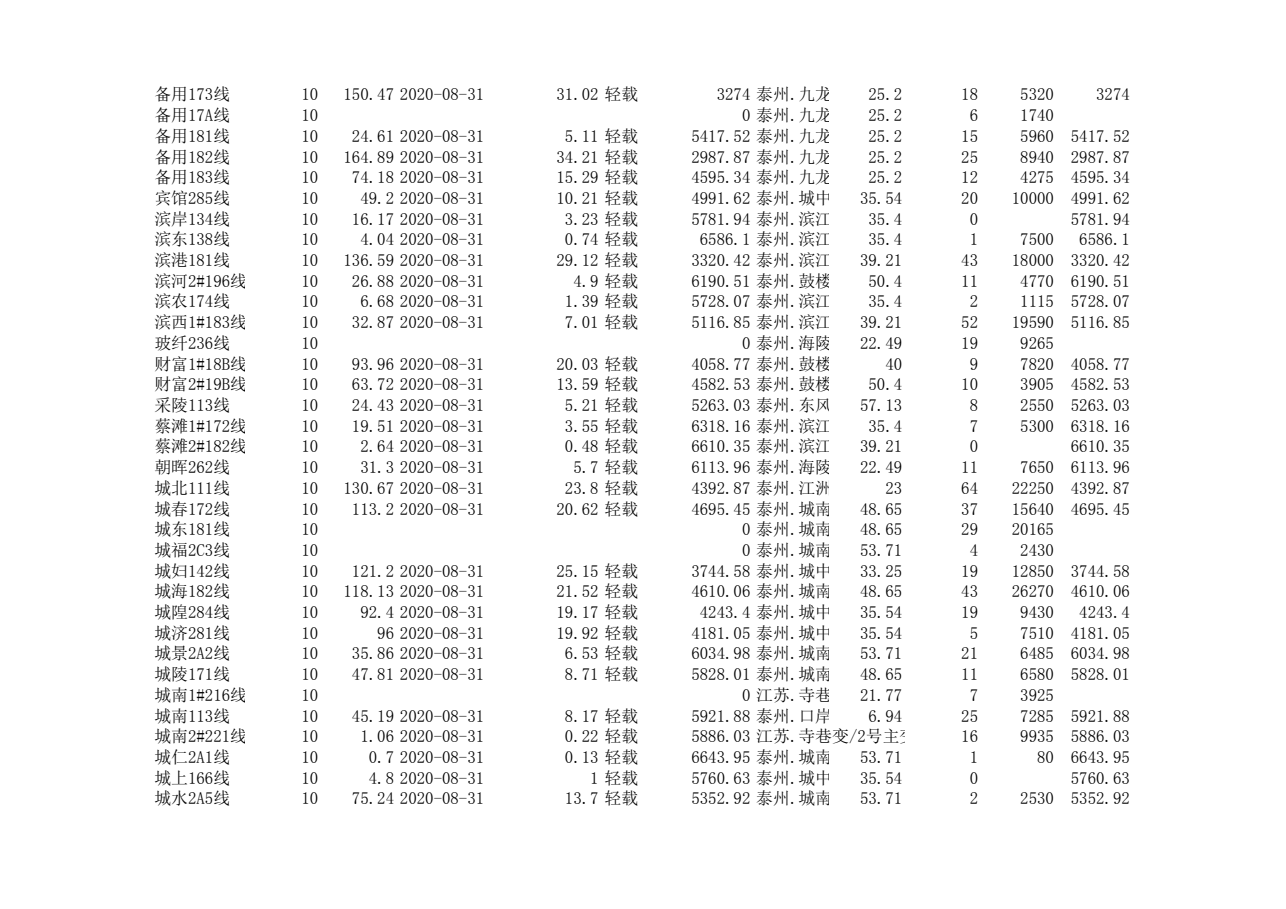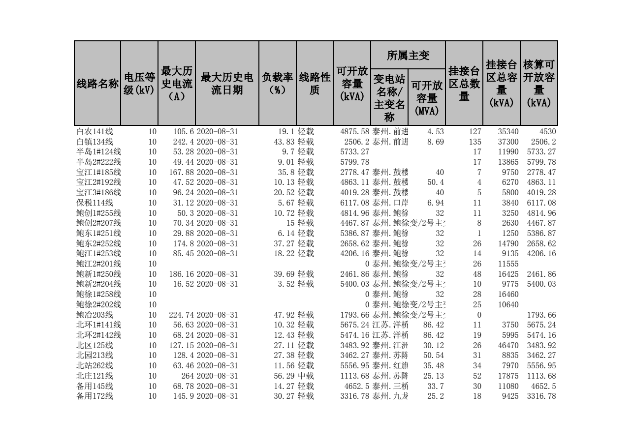 泰州本部2020年第三季度可开放容量信息