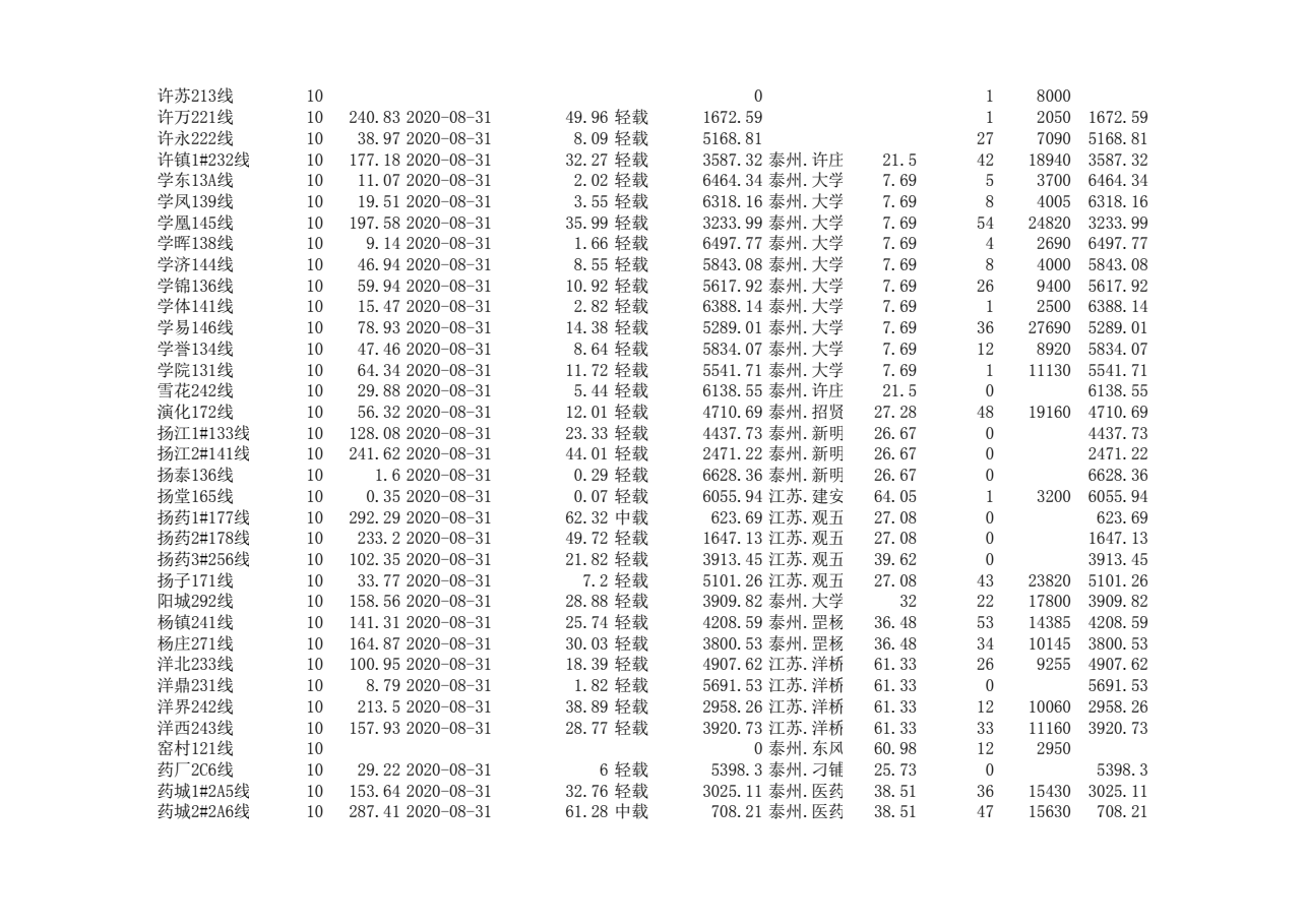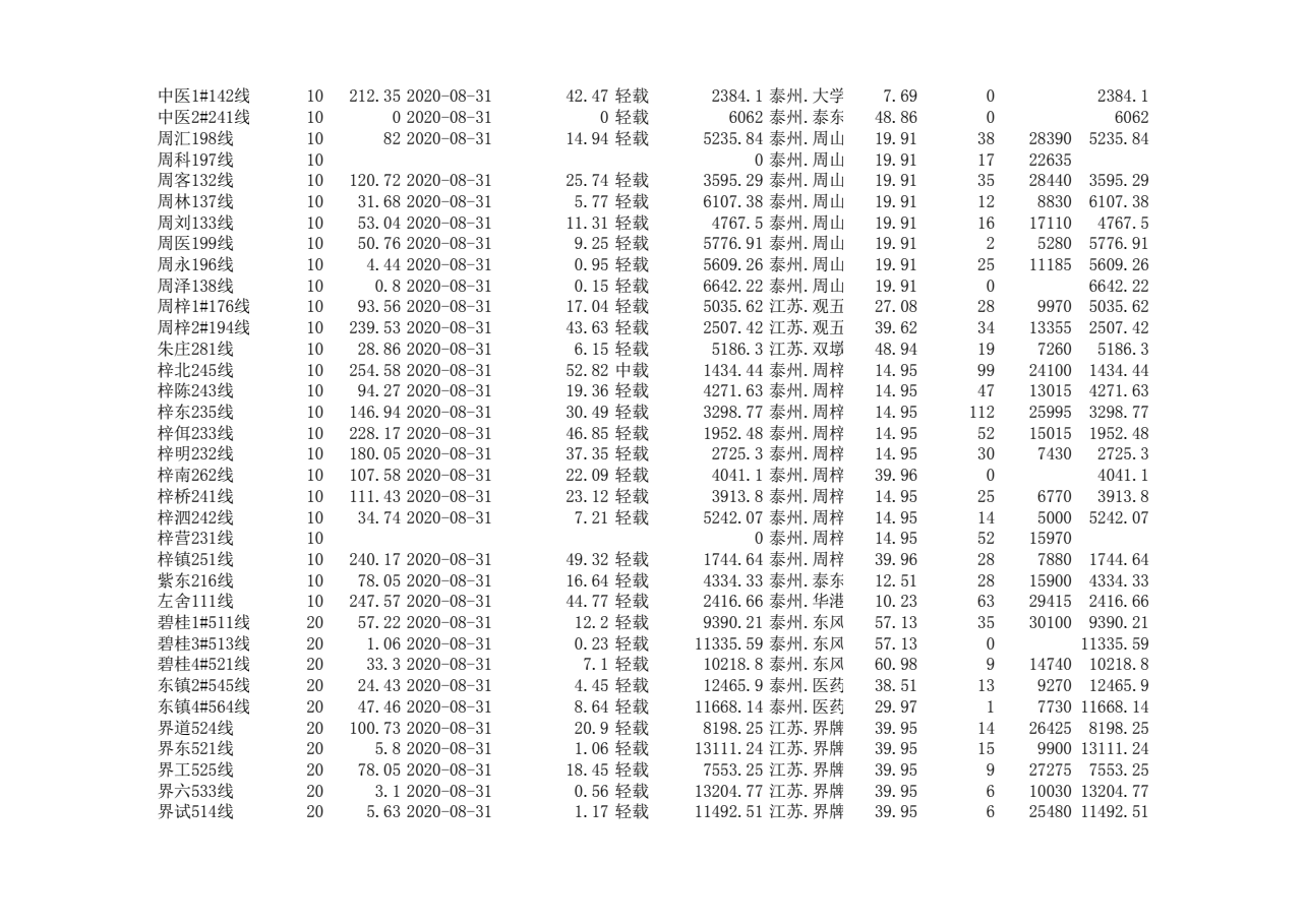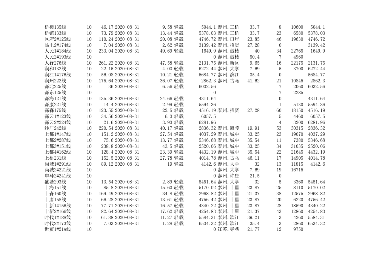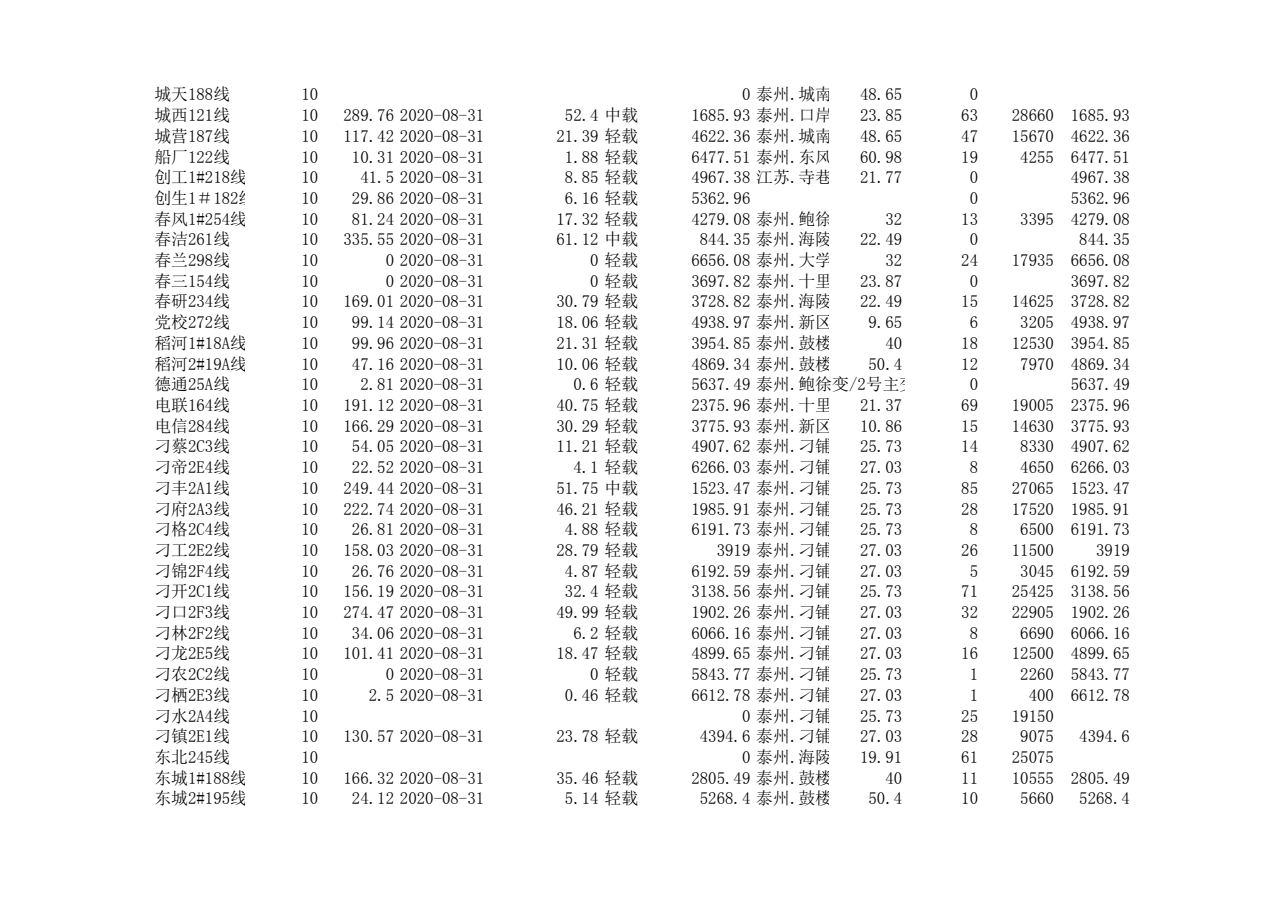 泰州本部2020年第三季度可开放容量信息