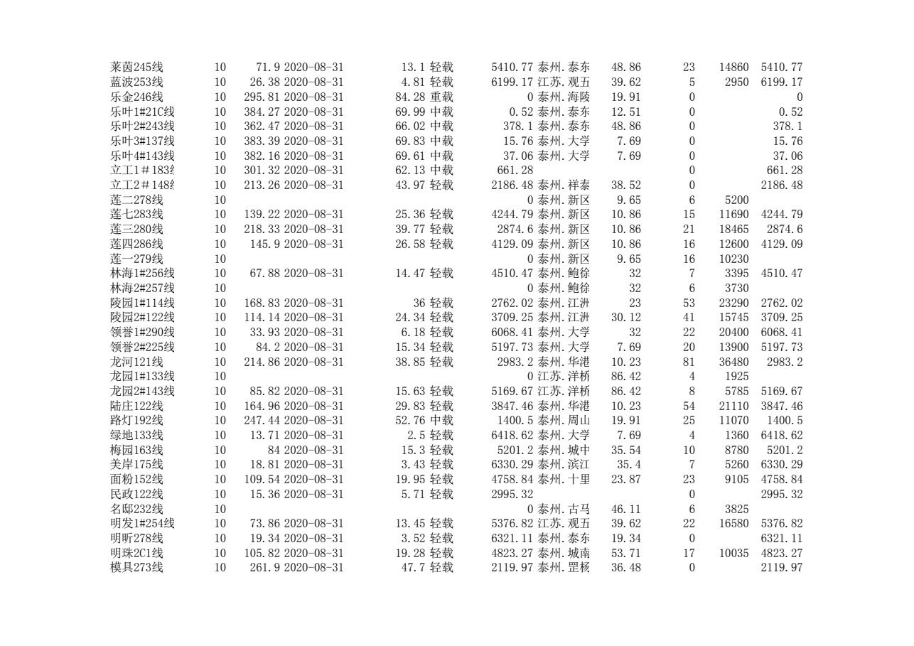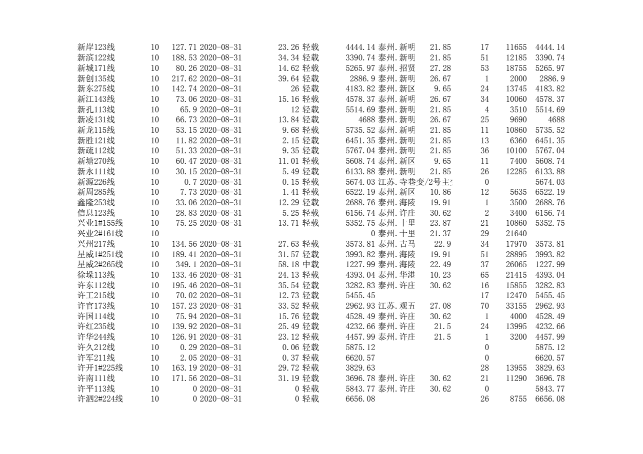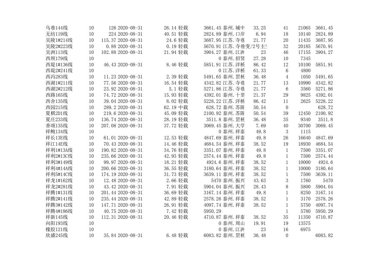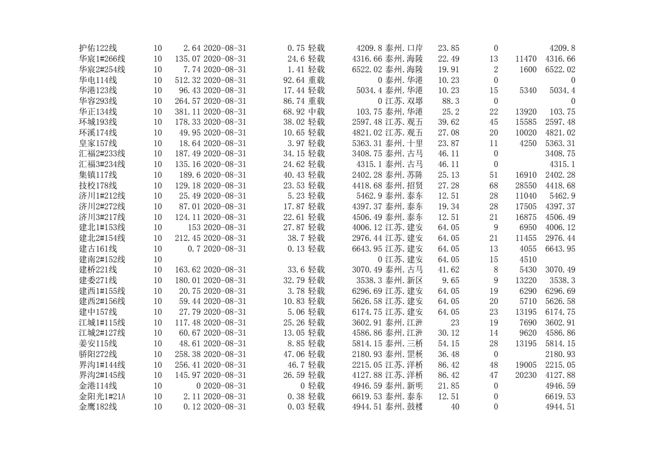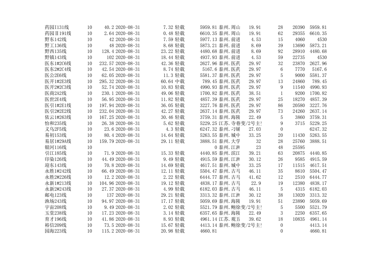 泰州本部2020年第三季度可开放容量信息