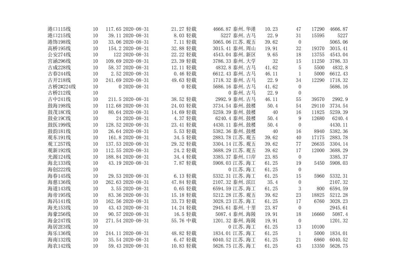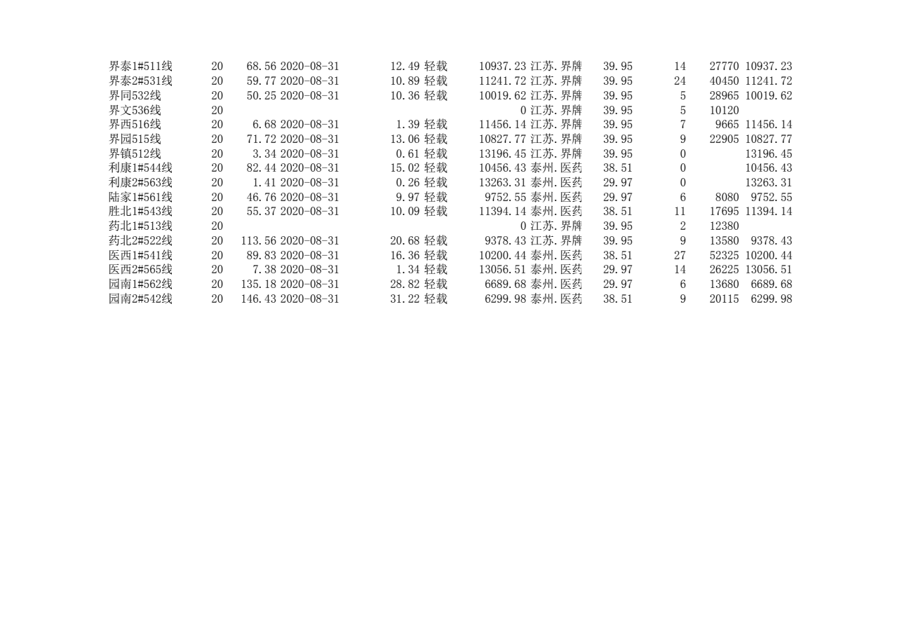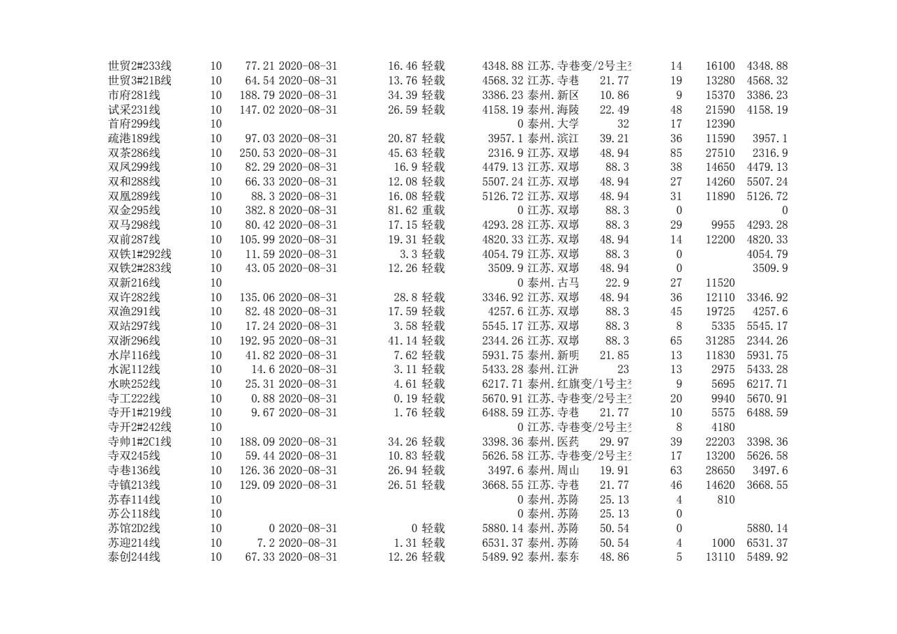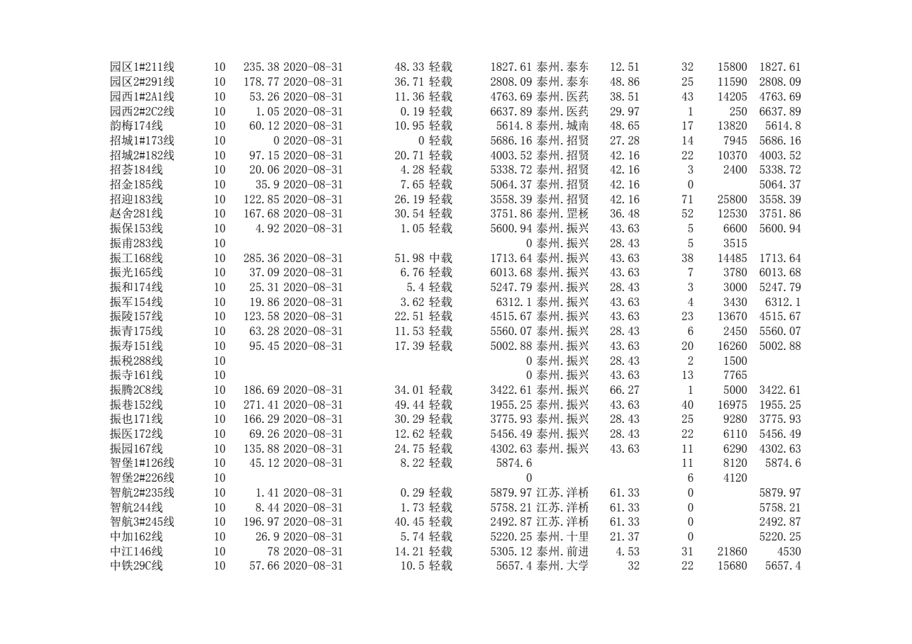 泰州本部2020年第三季度可开放容量信息