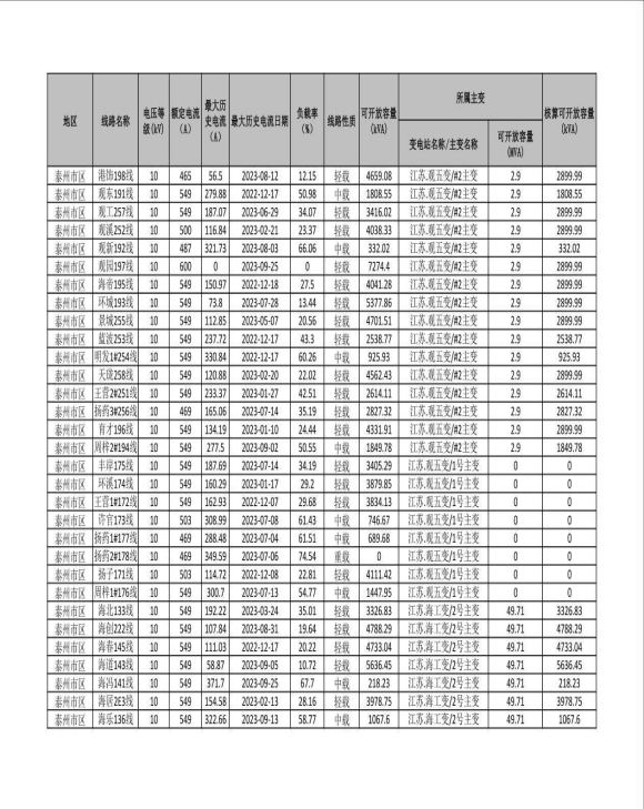 泰州全市2023年第四季度可开放容量信息