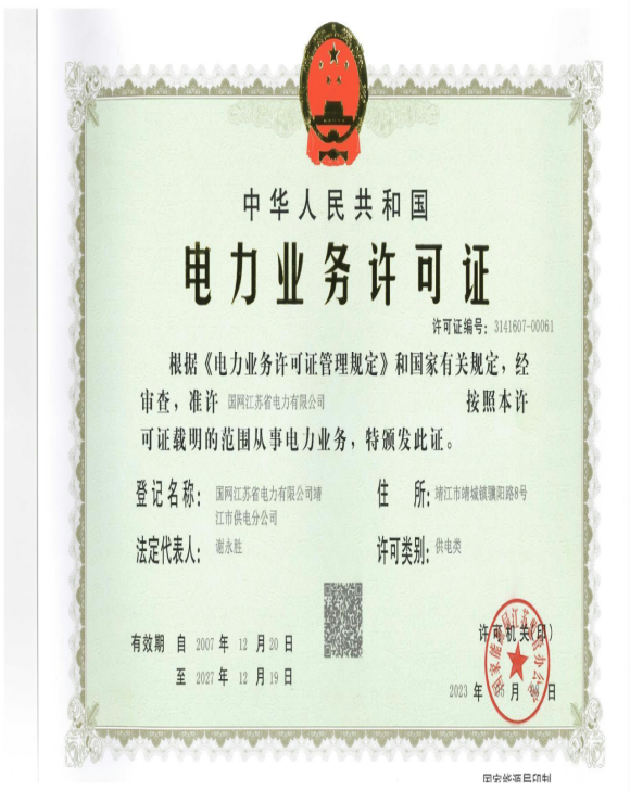 靖江供电公司电力业务许可证