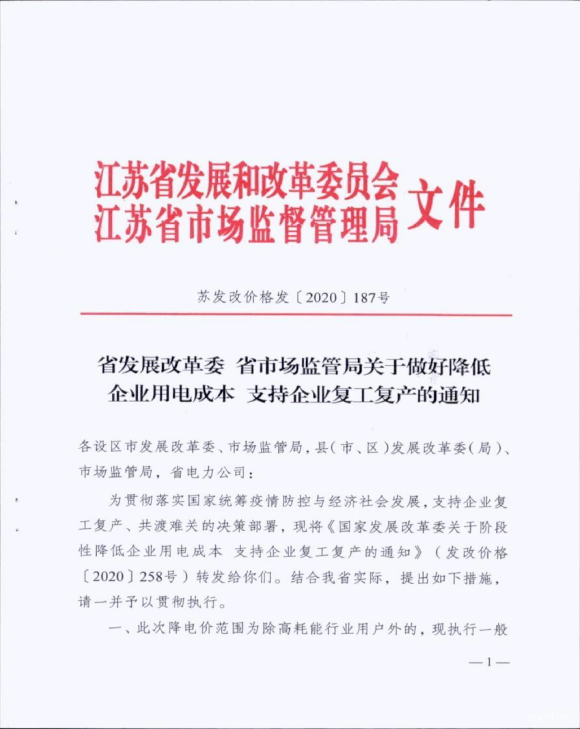 省发展改革委 省市场监管局关于做好降低企业用电成本 支持企业复工复产的通知