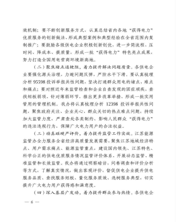 江苏能源监管办关于开展提升用户“获得电力“优质服务水平综合监管工作的通知(〔2020〕75 号)