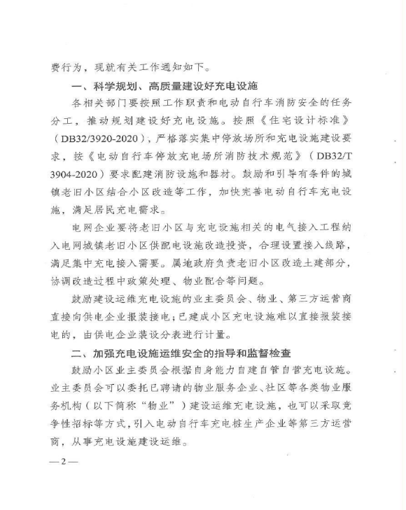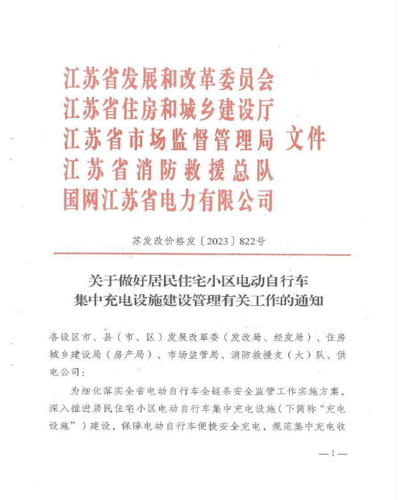 关于做好居民住宅小区电动自行车集中充电设施建设管理有关工作的通知