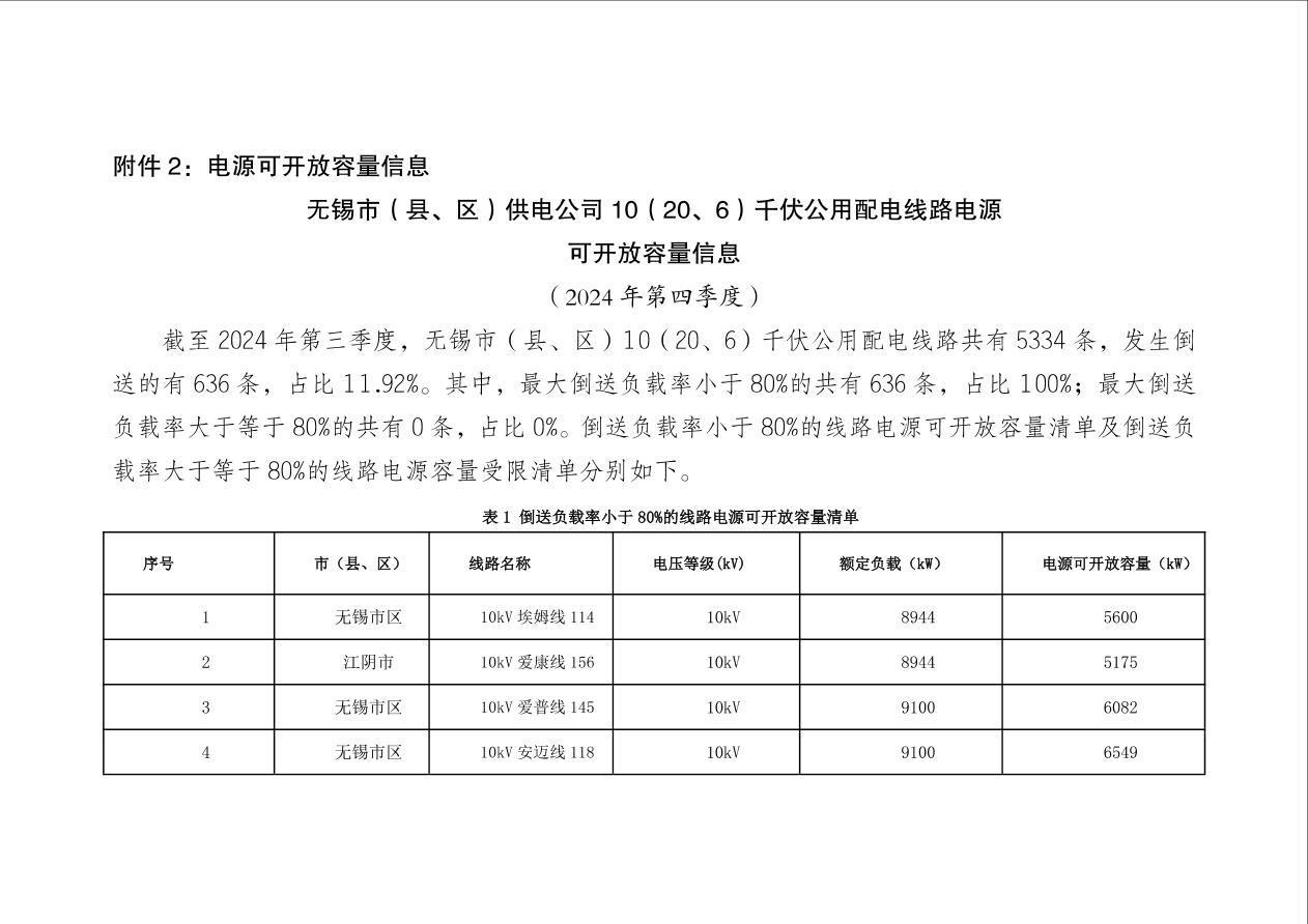 国网无锡供电公司配网可开放容量和受限情况(2024年第四季度)