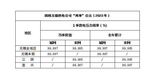 国网无锡供电公司“两率”公示(2023年第一季度)