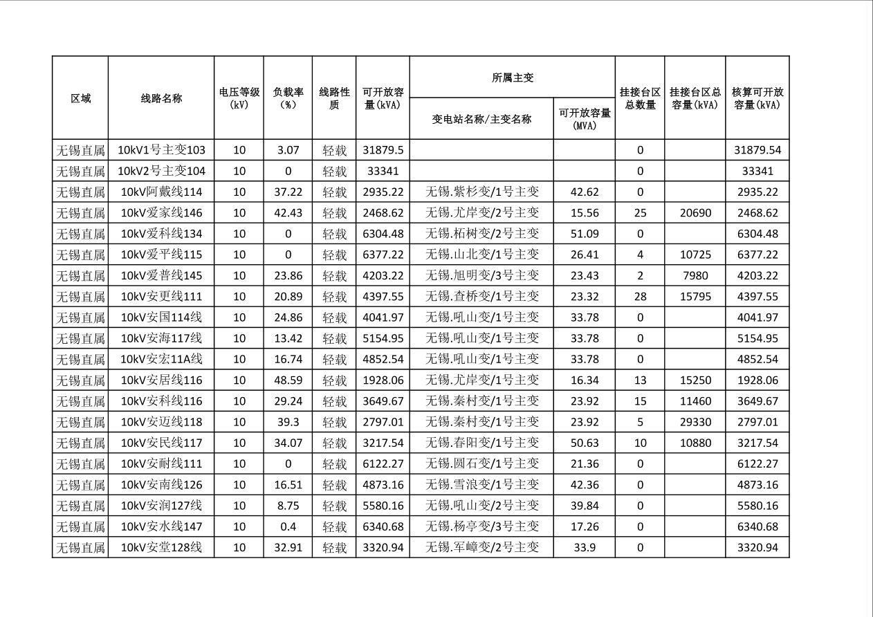 国网无锡供电公司配网可开放容量和受限情况(2024年第一季度)