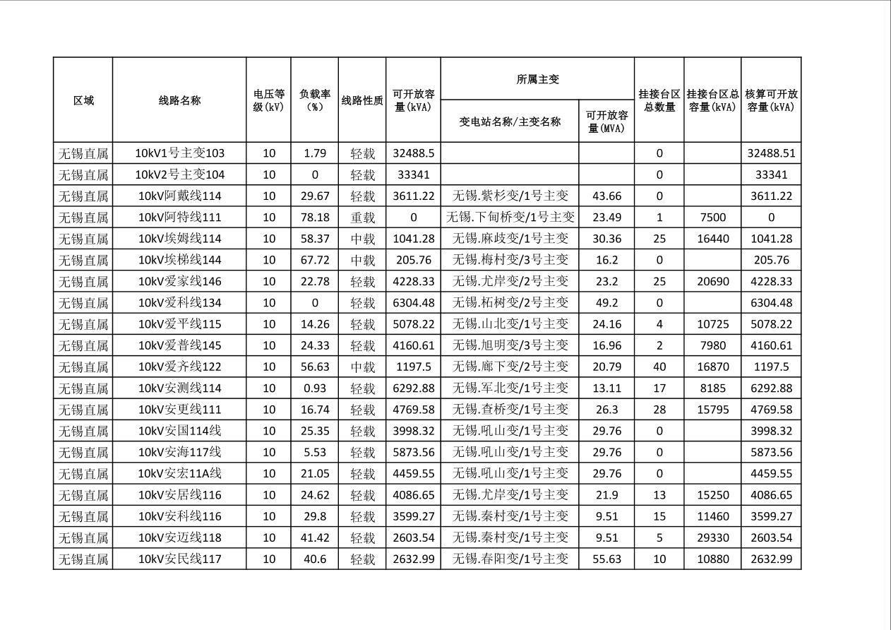 国网无锡供电公司配网可开放容量和受限情况(2024年第二季度)