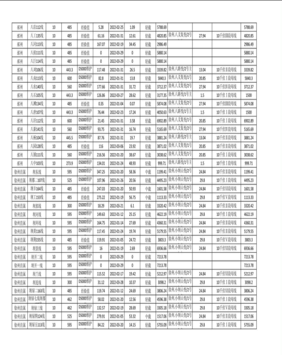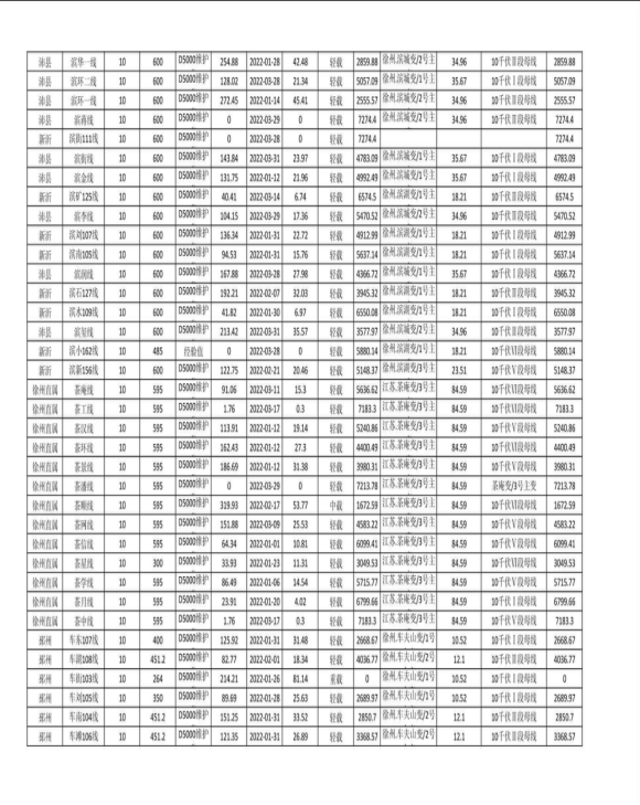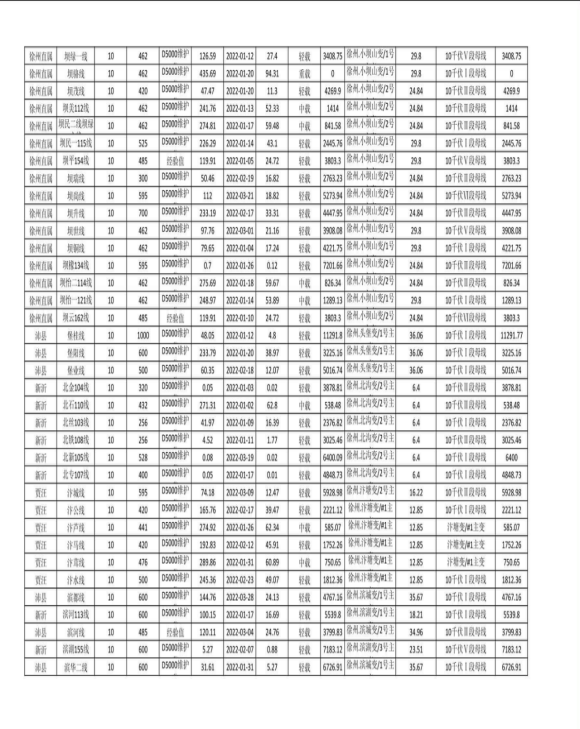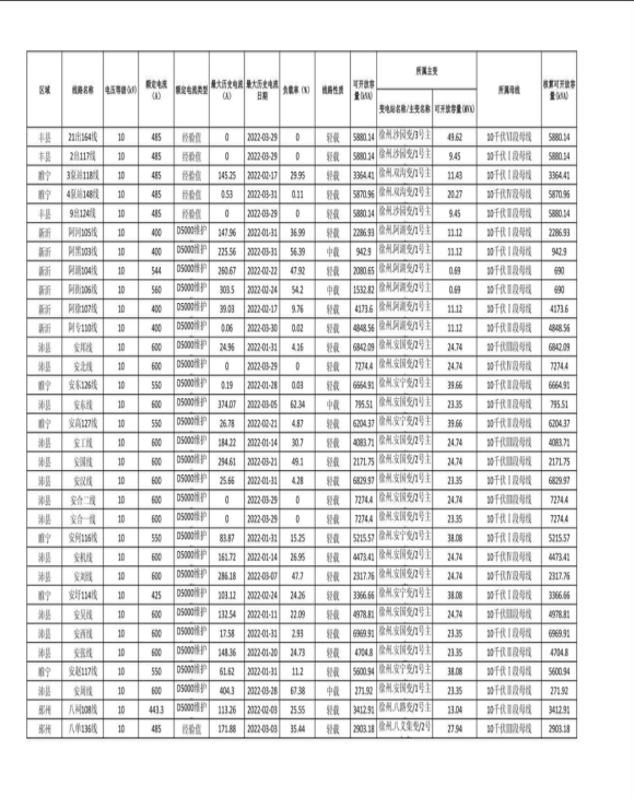 徐州公司配网线路可开放容量(2022年第二季度)