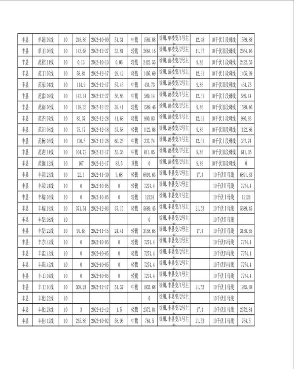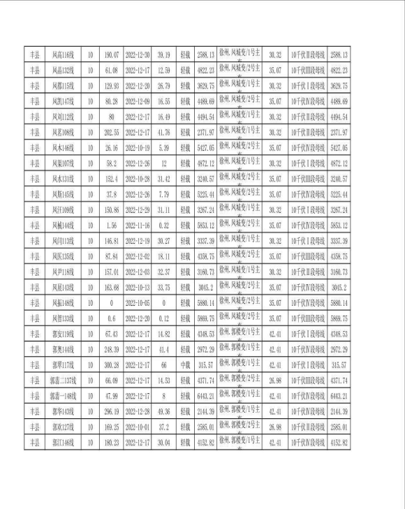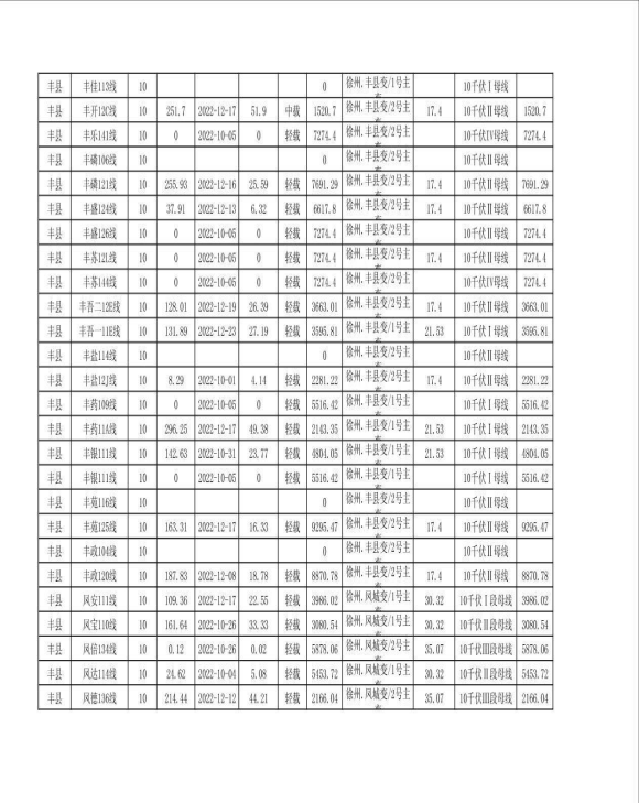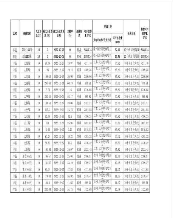 徐州市配网线路可开放容量(2023年一季度)