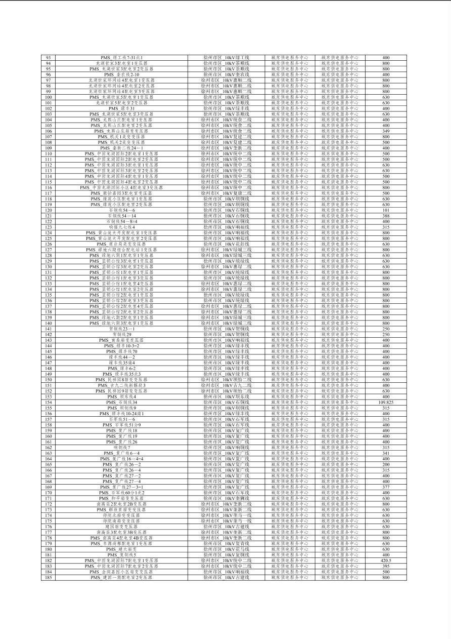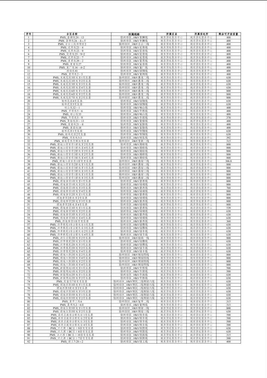 徐州电网2025年第一季度分布式光伏台区可开放容量明细表