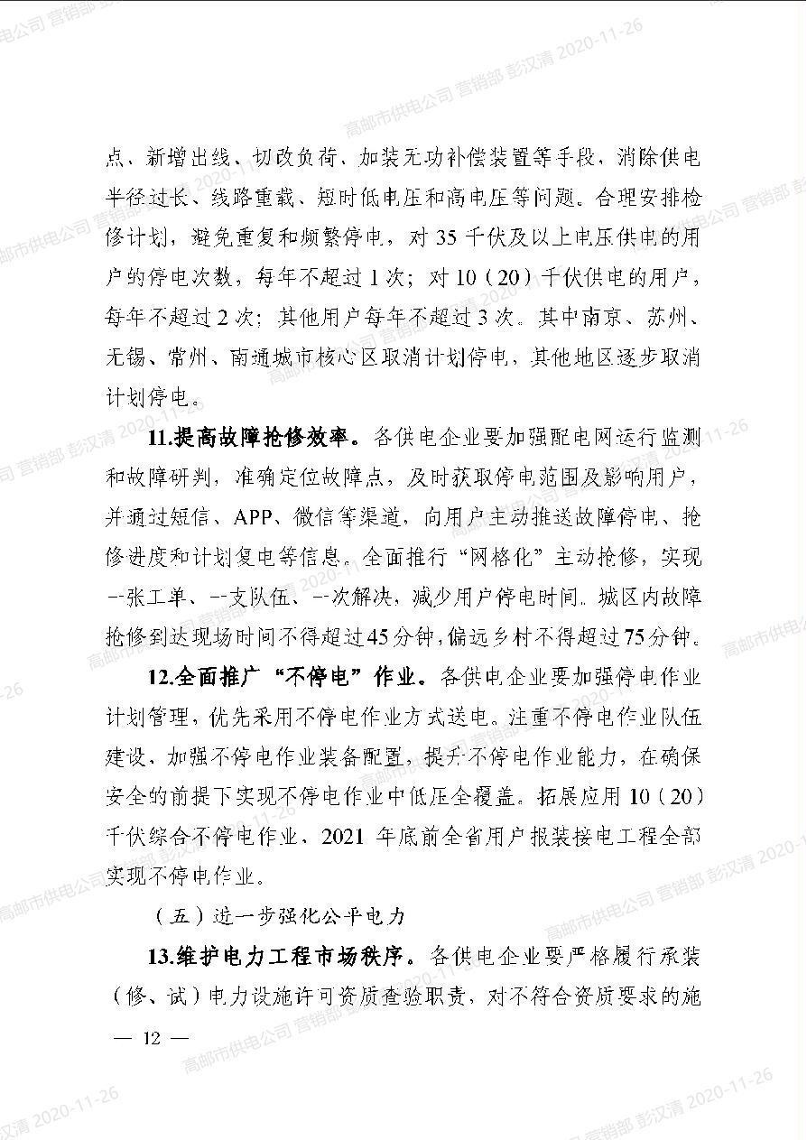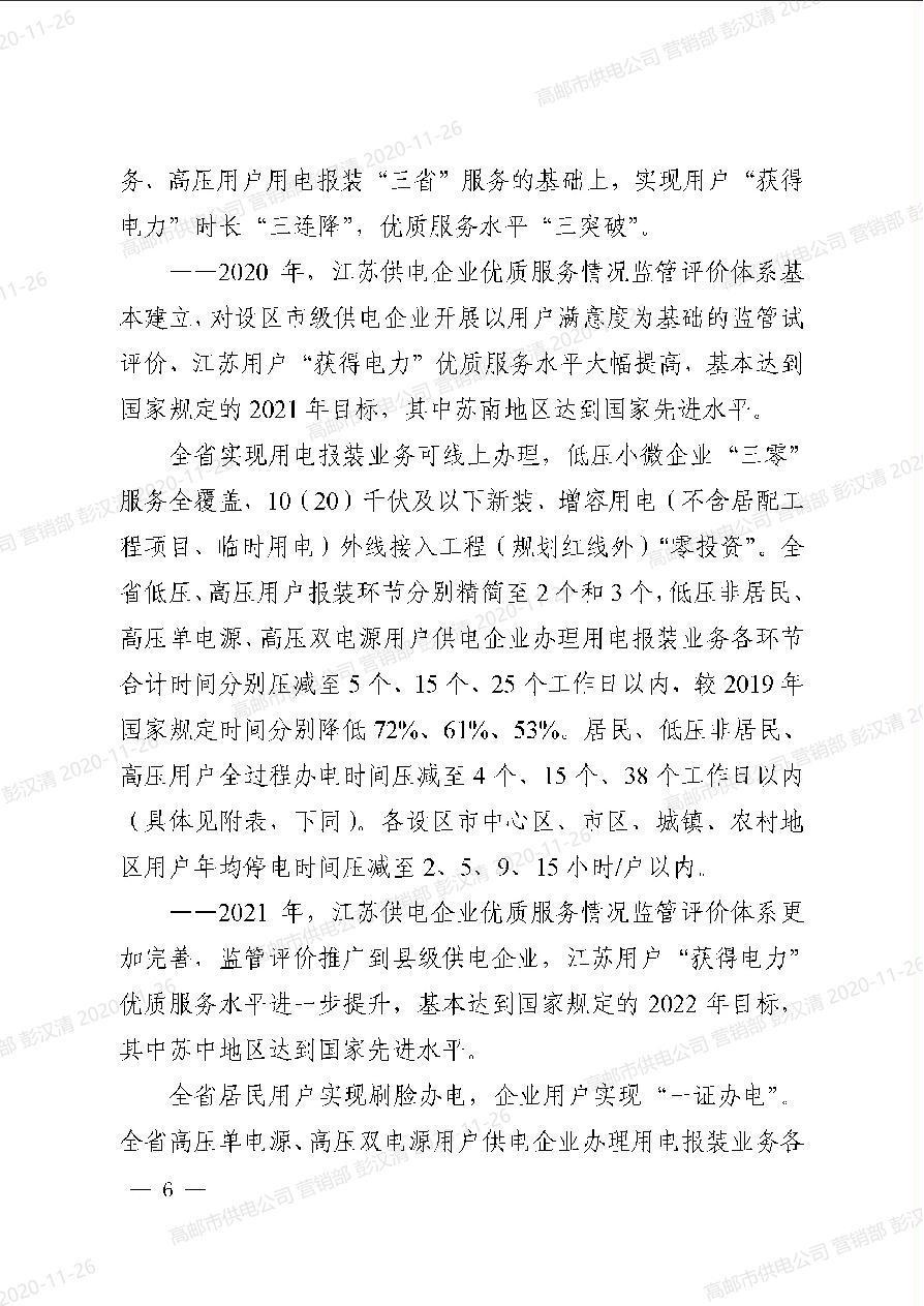 关于印发《江苏能源监管办全面提升“获得电力”服务水平持续优化用电营商环境三年(2020-2022年)行动方案》的通知(苏监能稽查[2020]115号)