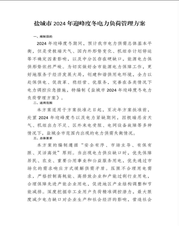 盐城市2024年有序用电方案和电力供应应急预案