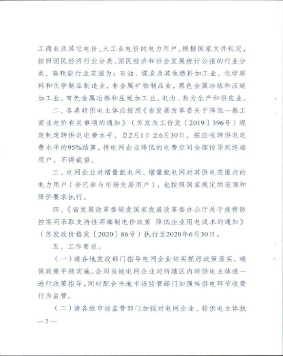 省发展改革委 省市场监管局关于做好降低企业用电成本 支持企业复工复产的通知