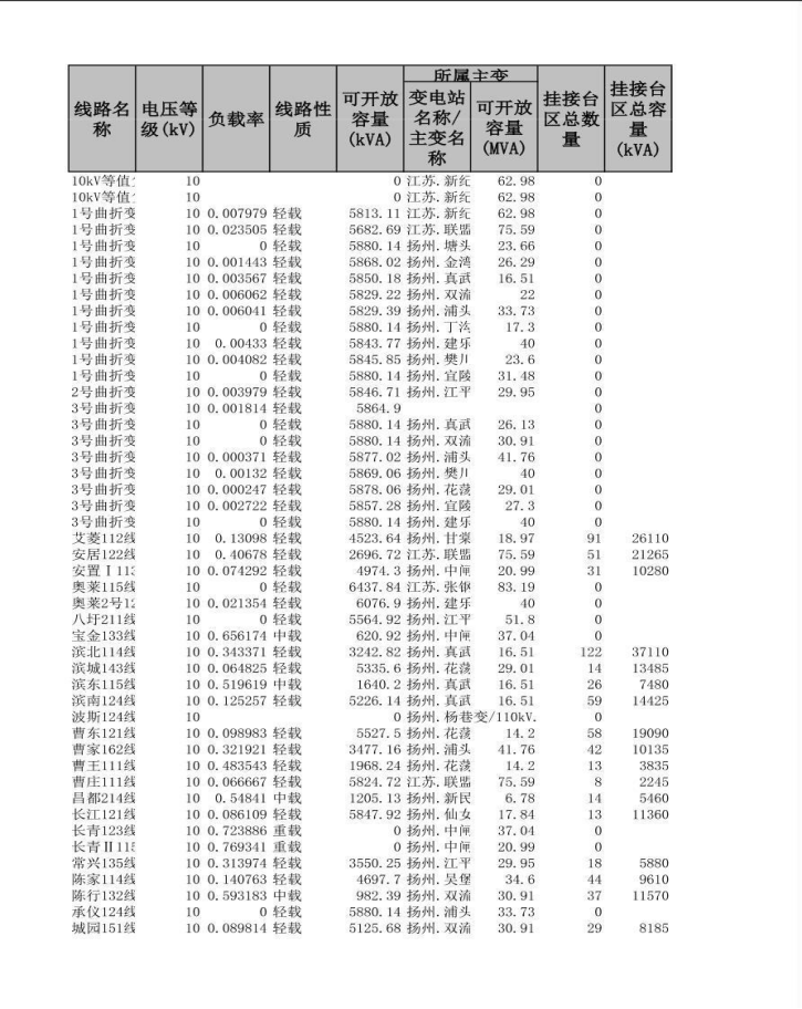 可开放容量有关信息